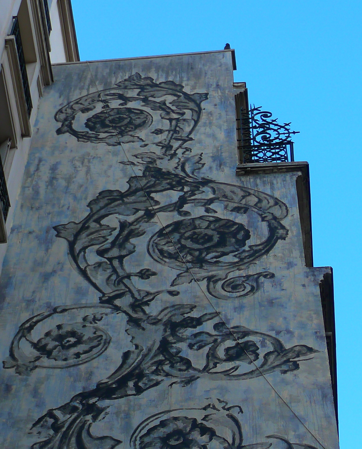 rue du Chevaleret, balcon et fresque jouent des volutes