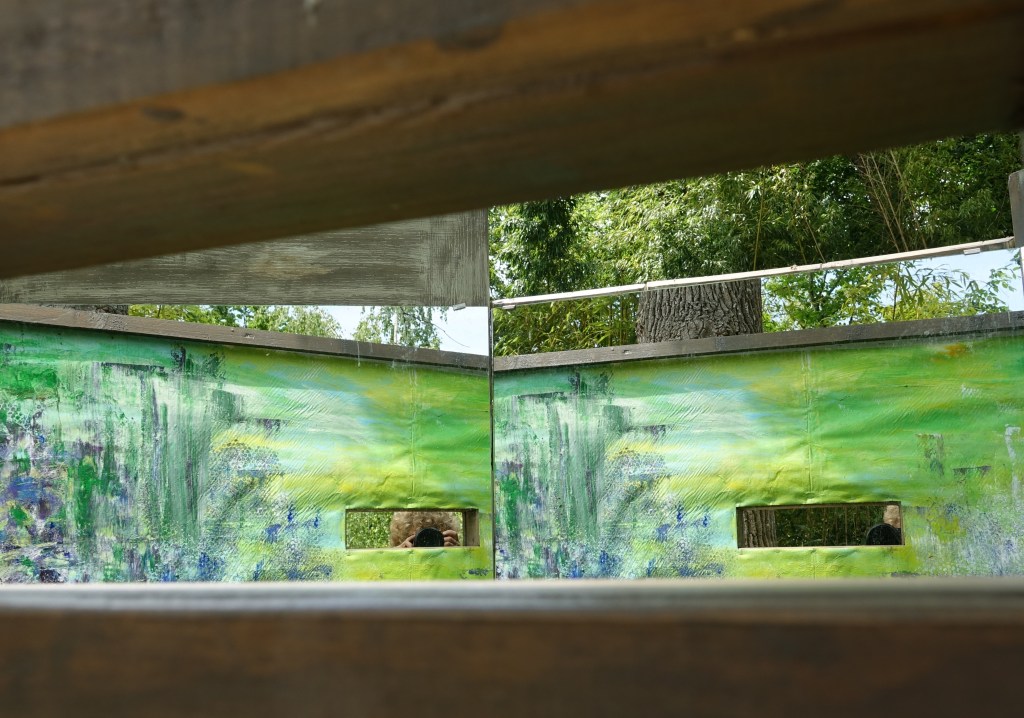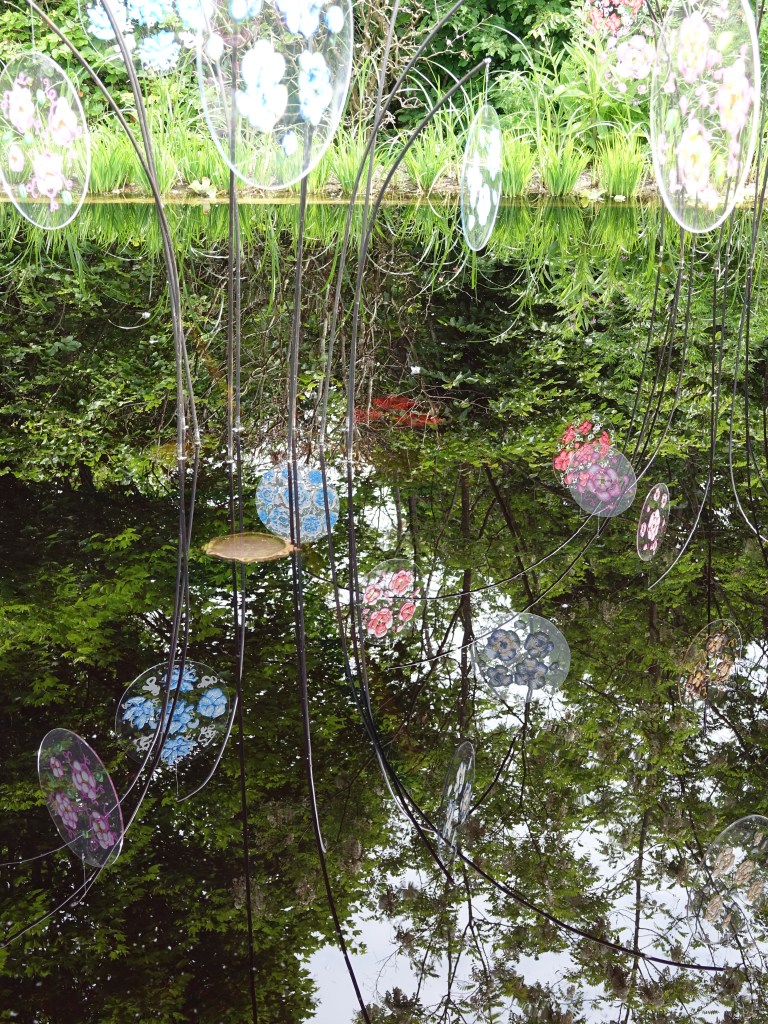 C’est aussi un jardin pour le vent qu’ont inventé Sophie Kao Arya Sandrine Tellier. Il s’appelle Elixir floral parce que les plantes sont toutes odorantes, mais on remarque d’abord les fleurs de verre aux couleurs si japonaises qui bougent doucement au-dessus de l’eau.