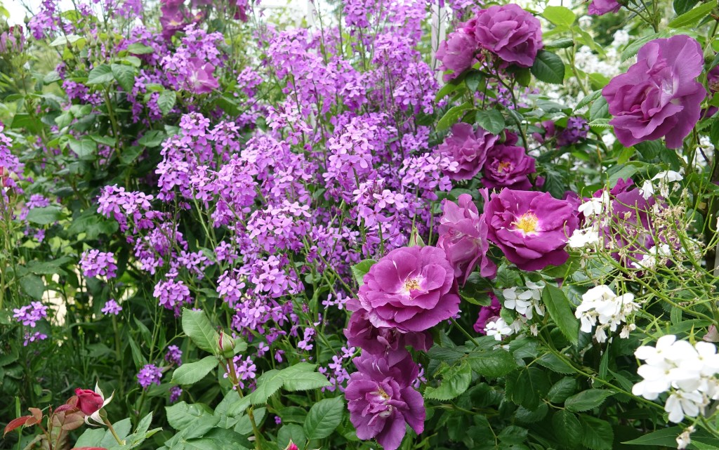 Un peu partout des prés frissonnent sous la brise. Les parterres d’iris se mêlent à la « mauvaise herbe », au pâturin des prés, aux folles avoines, aux amourettes, aux queues de lièvre…