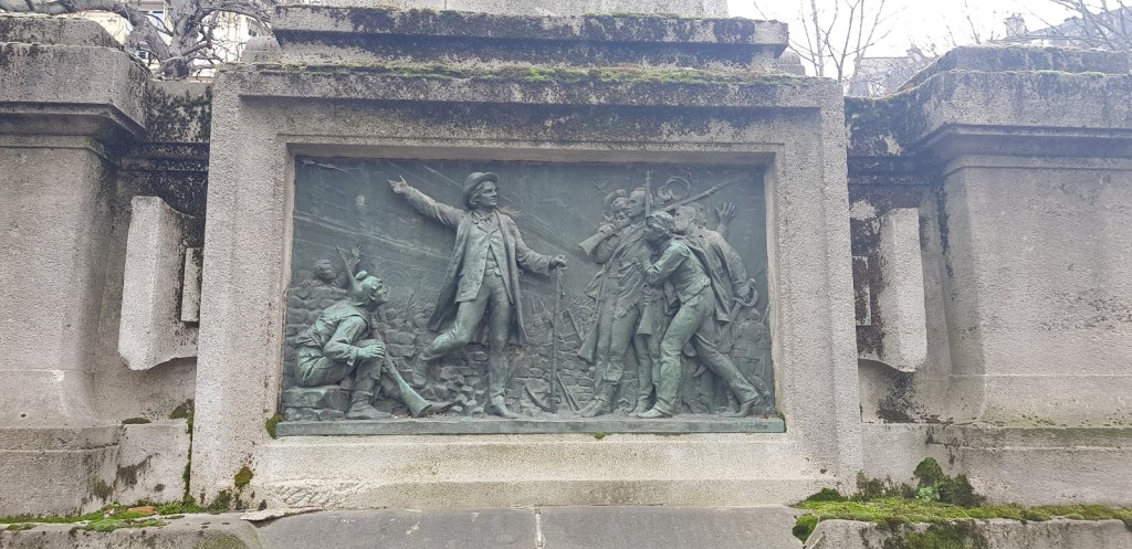 Alain fait remarquer le socle vide du monument créé en 1889 en hommage à François Vincent Raspail, chimiste et héros du suffrage universel. La statue a été fondue en 1942 sur ordre de Pétain pour contribuer à l’effort de guerre des Allemands. Elle n’a pas été remplacée comme si notre République n’avait plus rien à faire de ses glorieux fondateurs.