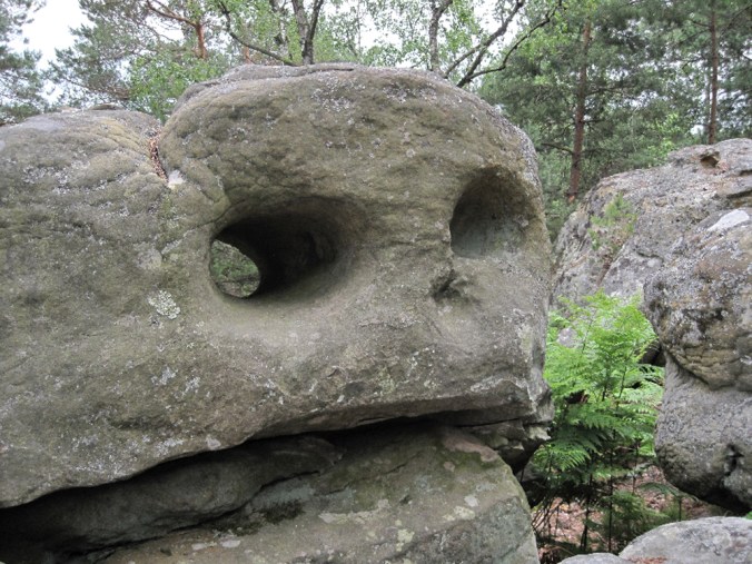 Chaque fois que nous nous baladions ensemble, Ivan nous rappelait l’histoire du grès de Fontainebleau, cette roche composée de sable (quartz) et d’un ciment fourni par la silice dissoute par la mer Stampienne qui avait envahi le bassin parisien entre trente-sept et trente-trois millions d’années avant JC. Le sable, qui peut atteindre soixante mètres d’épaisseur, affleure par endroits. Les sables du Cul du Chien, particulièrement blancs, sont de la silice quasi pure, répétait patiemment Ivan, ce qui en fait une matière première précieuse pour l’optique de précision. C’est ce sable qui a fourni le ciment siliceux nécessaire pour former les blocs de grès de Fontainebleau, disposés en bancs dans la masse sableuse, puis dégagés par l’érosion.