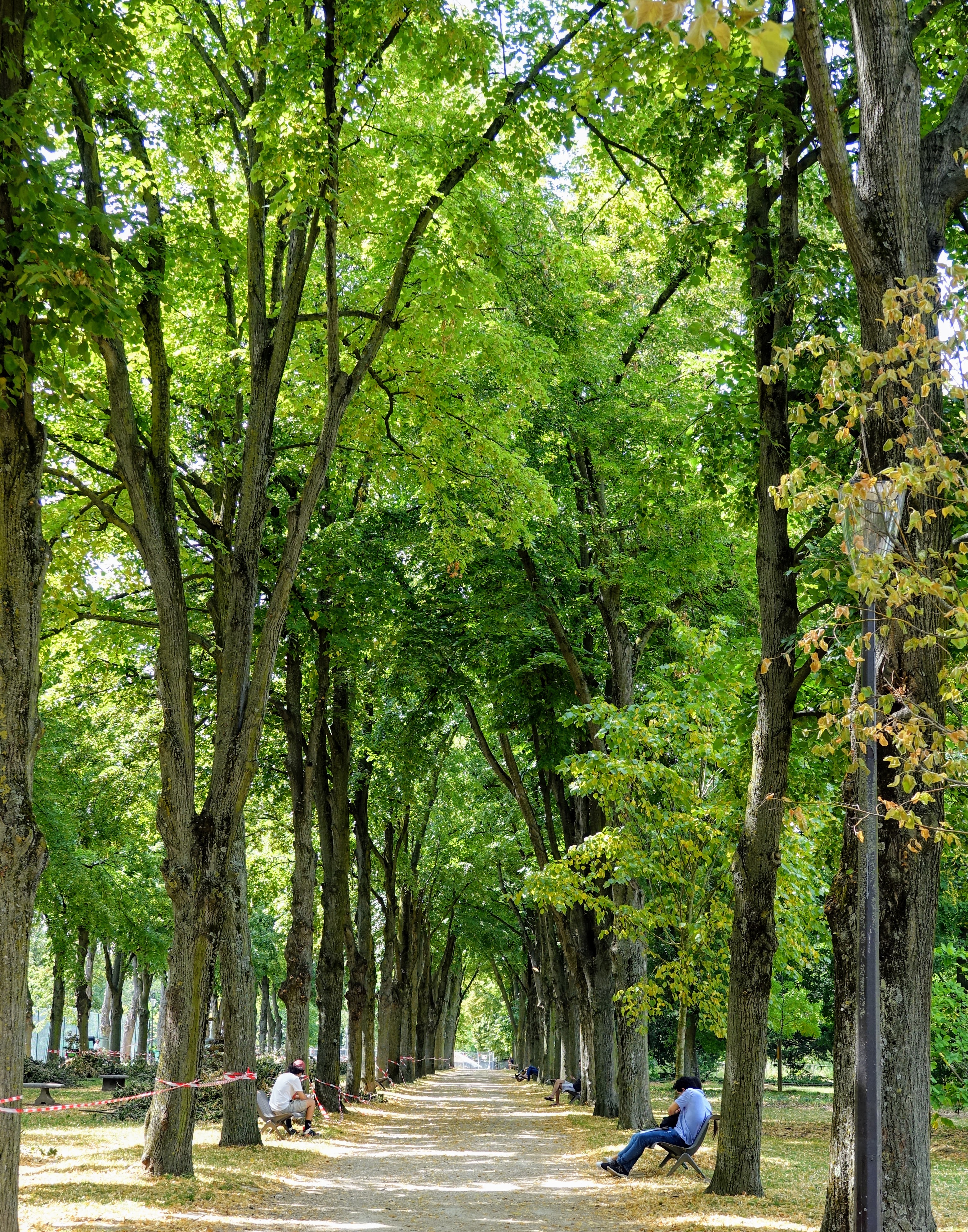 Nous rejoignons les tilleuls qui bordent une grande allée. Quelques personnes se reposent sous la voûte de leur feuillage. Paris a l’air très loin