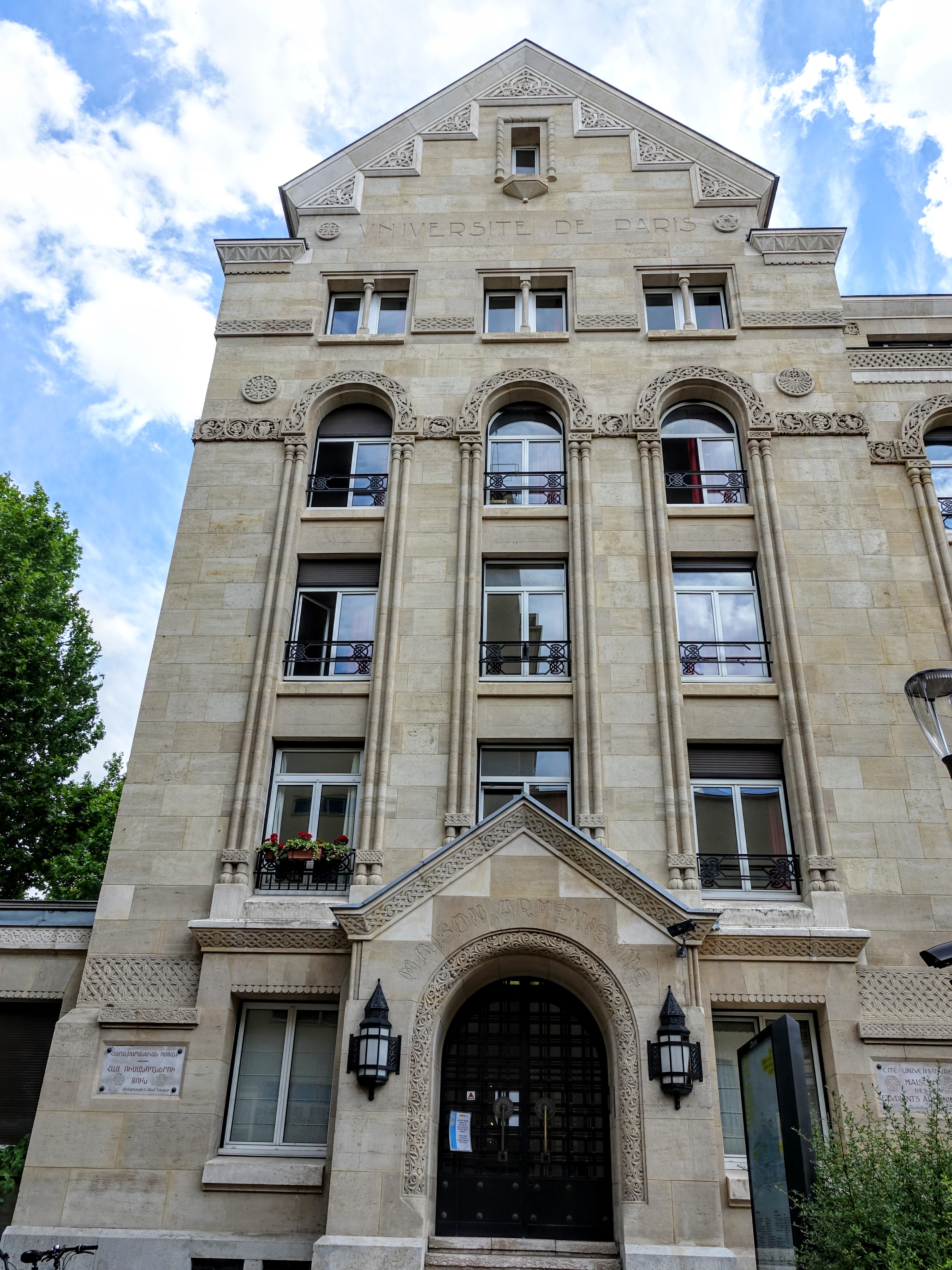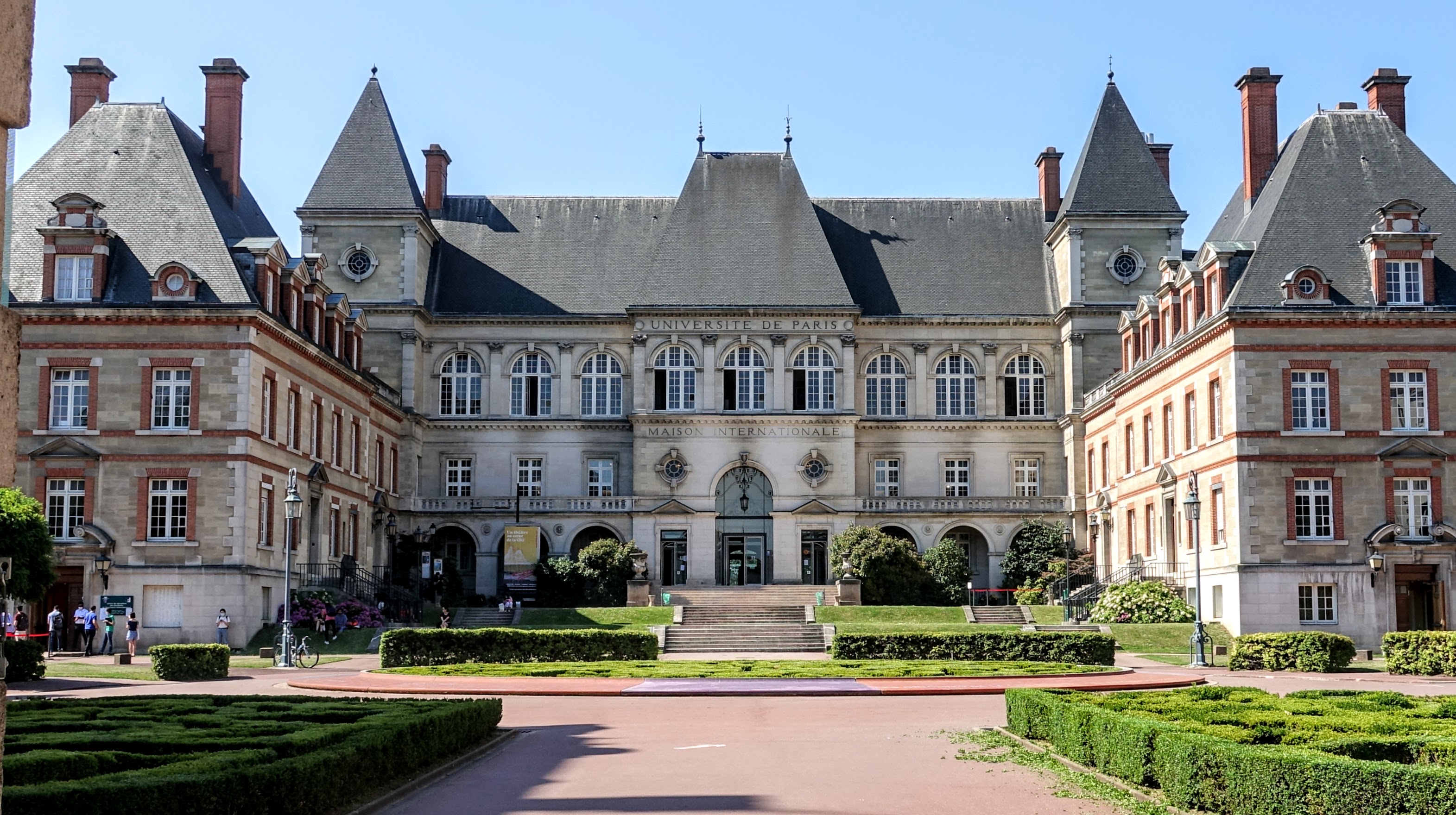 Le bâtiment central, la Maison Internationale, qui abrite la bibliothèque, le restaurant, un théâtre, etc,est construit dans un style qui imite le château de Fontainebleau.