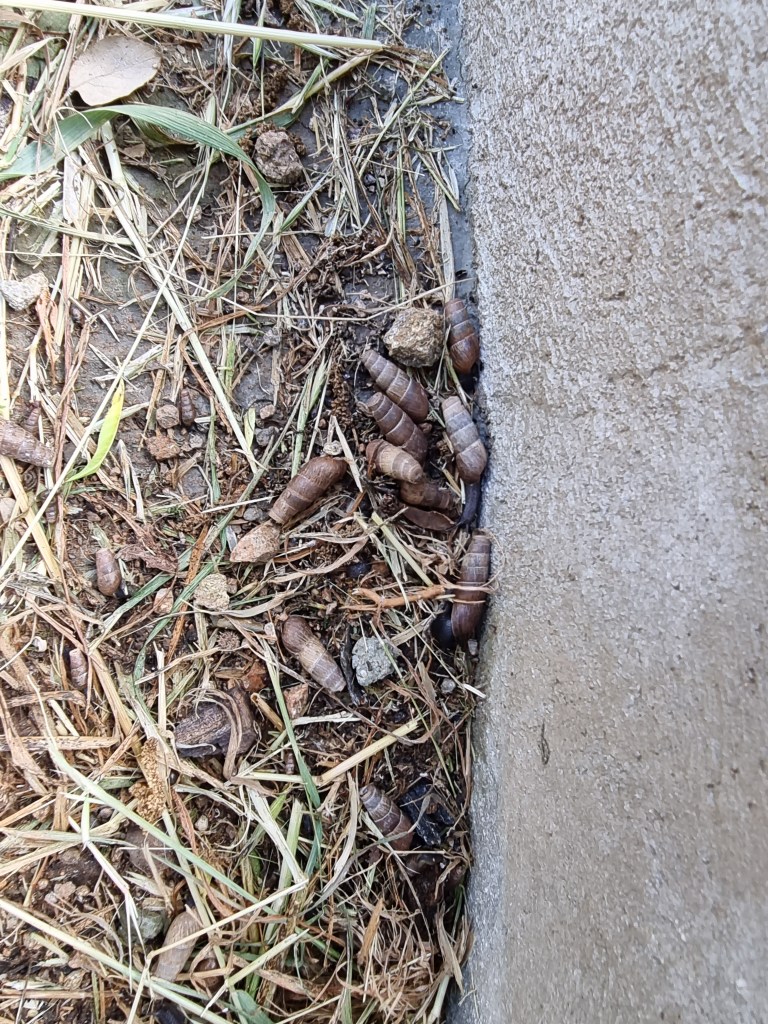 Mais j’étais confrontée à un grand rassemblement de bulots limaceux qui s’agglutinaient en particulier contre les murets. Les coquilles étaient plutôt couleur de terre, c’est pourquoi je n’ai pas vu tout de suite l’étendue du problème, mais bientôt, je n’ai plus vu qu’eux.
