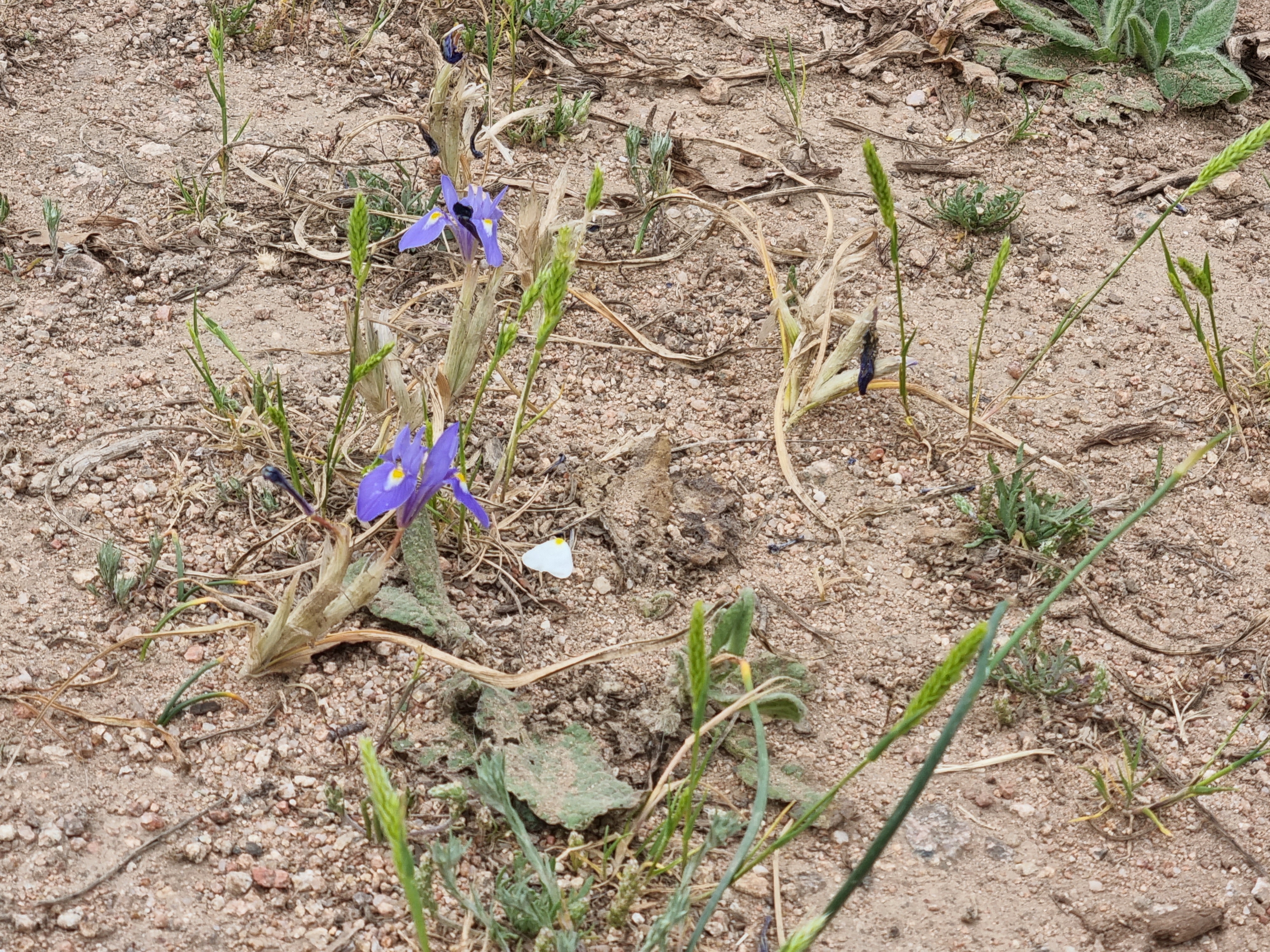 Quand le vent s’arrête, une pluie froide et têtue détrempe les chemins. C’est un paradis pour les fleurs de rocailles. Au milieu d’une piste, de minuscules iris ont réussi à écarter la terre et à éclore.