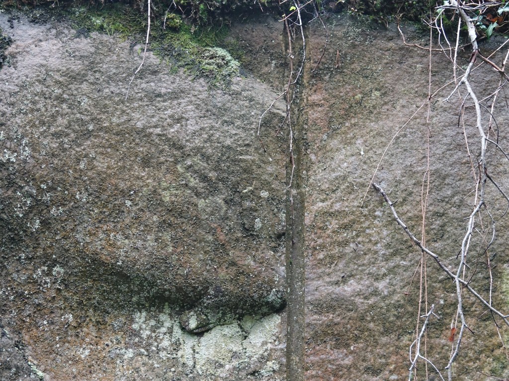 Les carrières du Long Boyau furent parmi les dernières à ouvrir. Tout le long du chemin, la paroi verticale qui fend le paysage est un front de taille que les hommes attaquaient, une fois ôtée la couverture végétale.