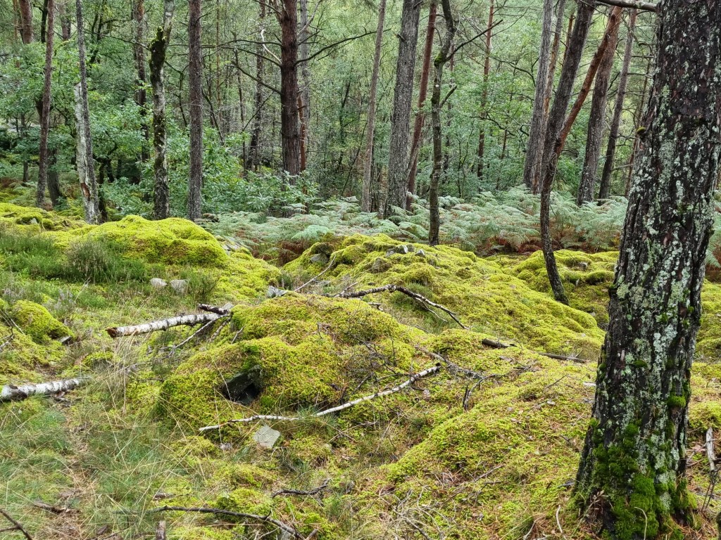Sous la mousse d’un vert si brillant malgré le jour gris, il y a les tas de rebuts, des « écales », laissées par la taille des blocs.