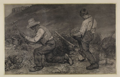 Un tableau de Courbet, disparu dans les bombardements de Dresde, et dont restent une gravure et des copies, évoque la pauvreté des carriers vêtus d’habits déchirés et leur travail si pénible. Ce tableau est à la fois un manifeste réaliste qui fit scandale et il transforme les tailleurs de pierre en icones de la dénonciation de l’exploitation ouvrière.