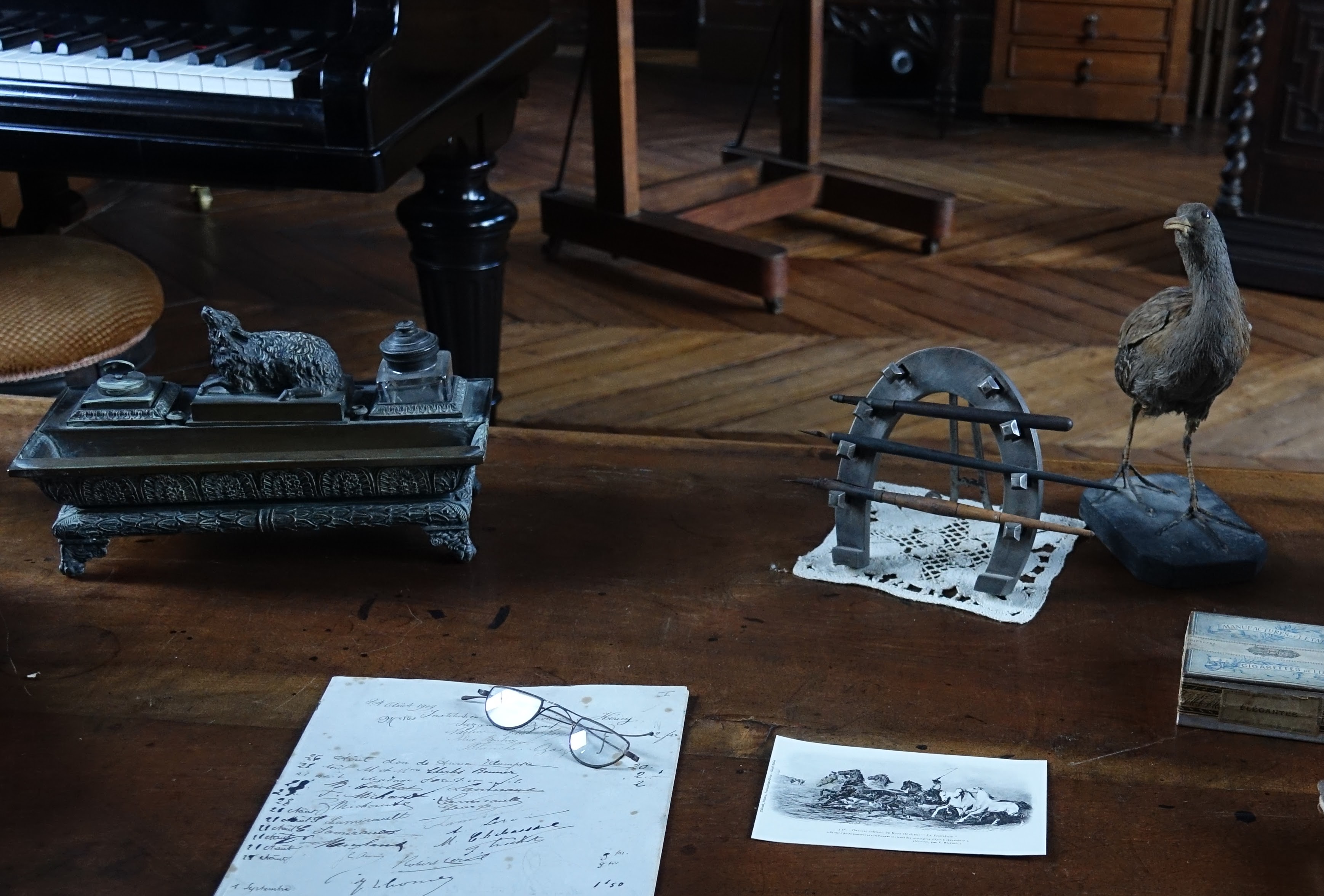 A la mort de ses compagnons, elle les fait naturaliser et les installe dans l’atelier. « C’est l’atelier d’autrefois, dit la guide. On n’a rien changé, pas même la couleur des murs. On a même laissé (ou plutôt retrouvé au grenier et remis en place) les traces du peintre, sa palette, son cendrier, sa paire de lunettes, son parapluie. »