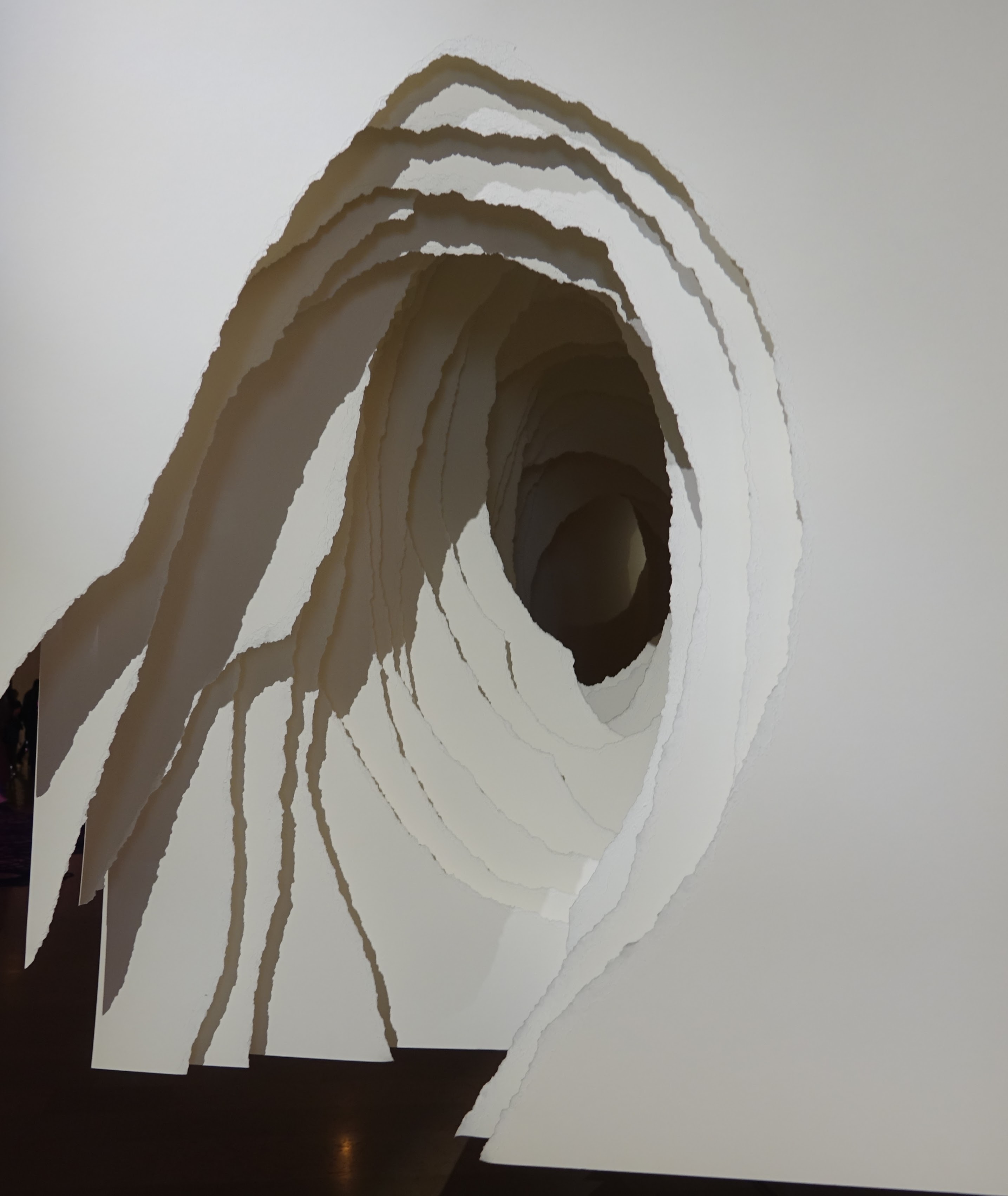 Tout près ombres et lumières se battent dans la grotte de papier inventée par Andrea Glajcar.