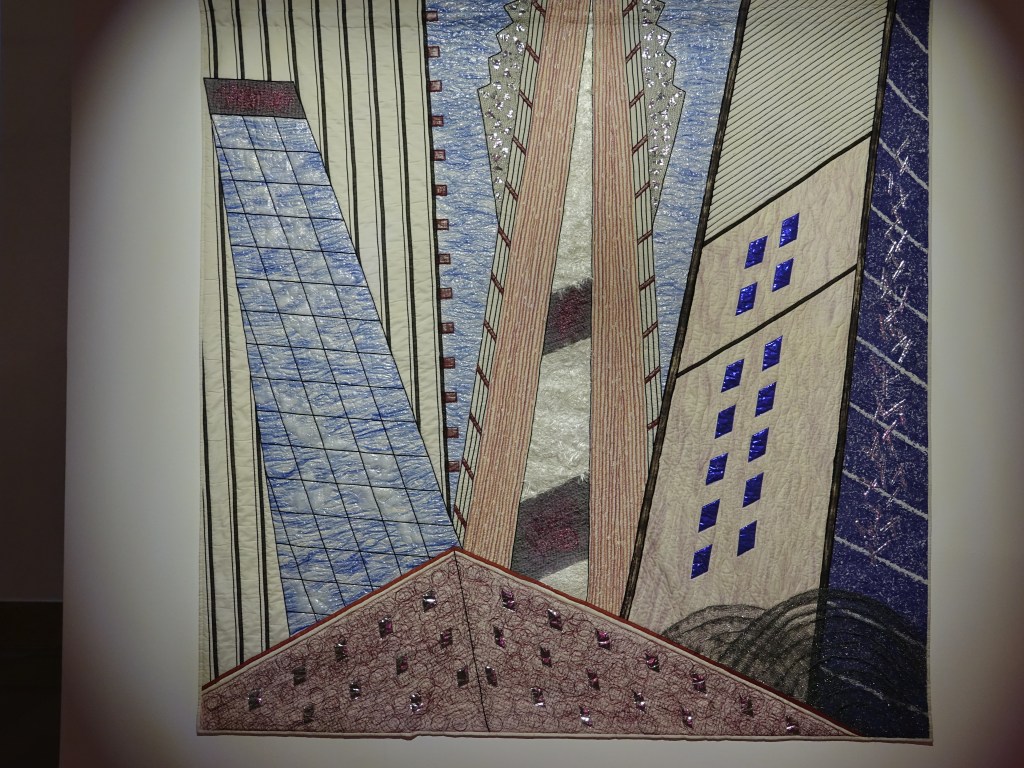 Même lorsque les techniques sont apparemment celles, classiques, du patchwork les formes et les couleurs renouvellent entièrement l’effet.