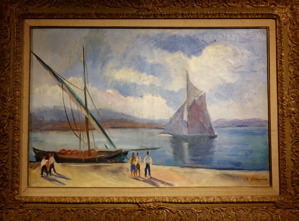 Il y a quelques très beaux tableaux. La Tartane entrant dans le port de Saint-Tropez est bien à Camoin : à l’intensité des couleurs, il préfère l’harmonie d’un ciel nuageux, d’une mer terne et de la voile du bateau, qui hésite entre le gris-rose et le gris-bleu.