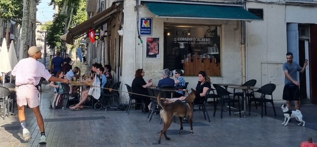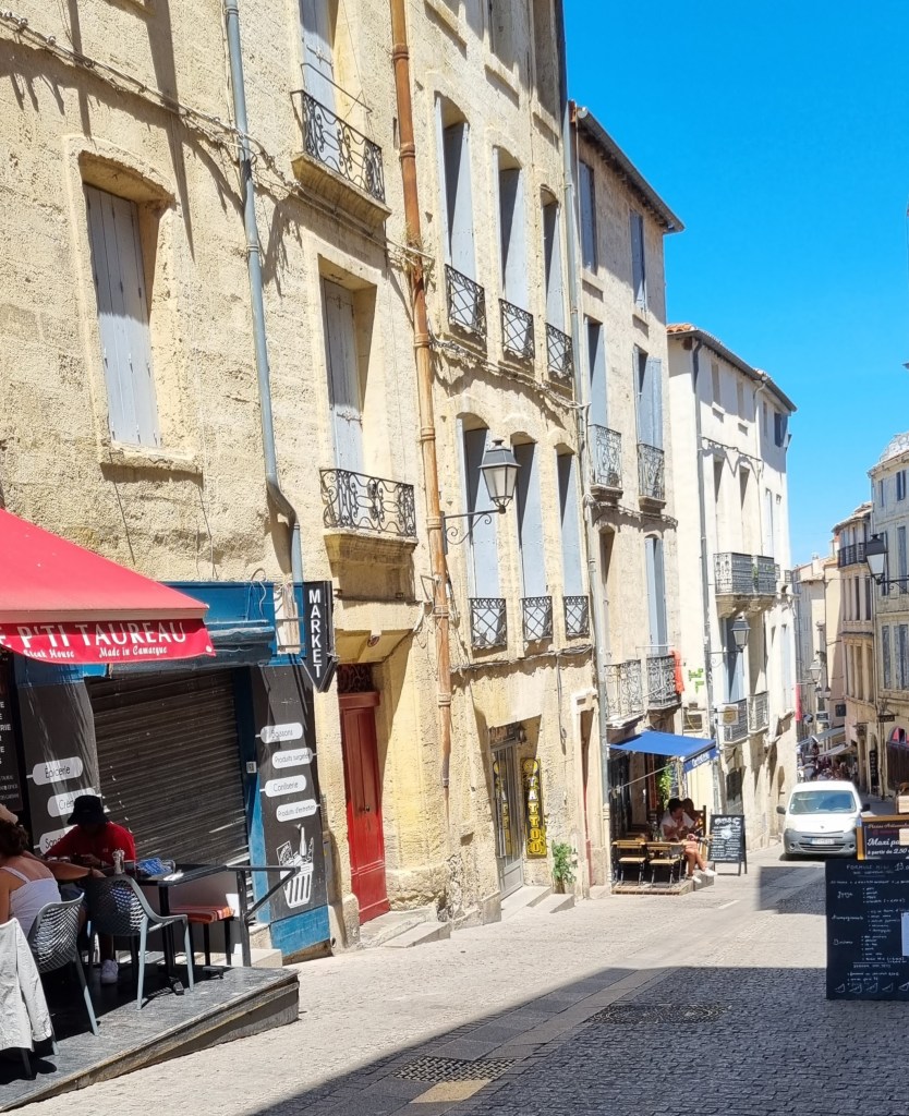 L’eau est précieuse dans ce territoire ingrat de l’Hérault où le Lez est exsangue quand il ne déborde pas, où les cailloux affleurent, où la végétation est rabougrie et grise. Aussi, les places de la ville ont toujours l’air nettoyées du jour, sentent le frais, et les brumisateurs des terrasses offrent un peu d’humidité aux passants.