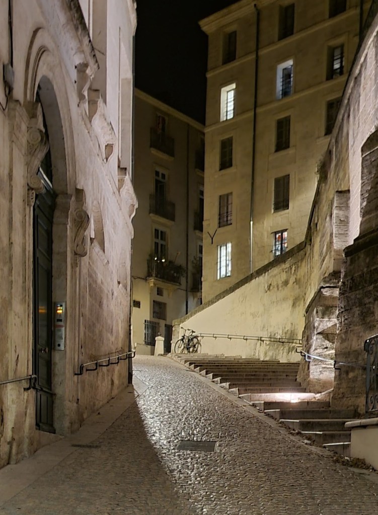 J’ai l’impression d’une ville bâtie sur un tertre. Les rues dégringolent vers la partie basse, certaines tellement raides qu’on évite les chaussures glissantes pour ne pas déraper sur les pavés.