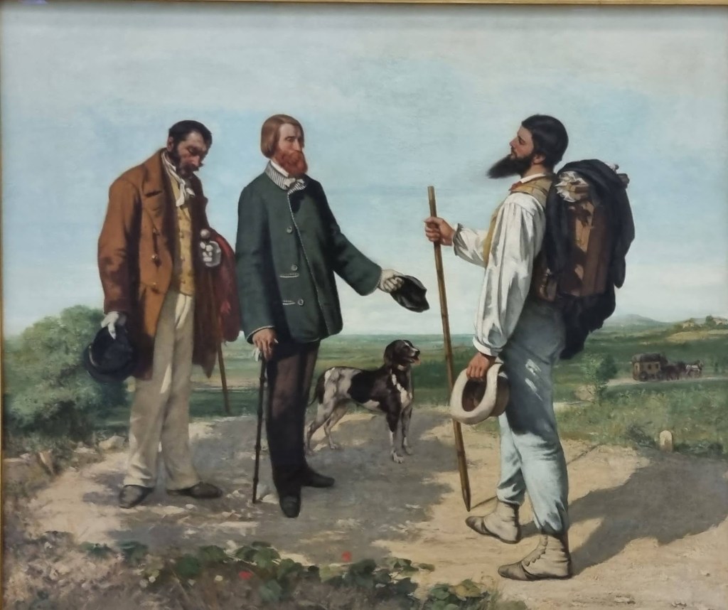 Mais voici l’orgueilleux Courbet de Bonjour monsieur Courbet, le peintre à la barbe pointue que son mécène salue respectueusement (au fond comme saluaient les donateurs médiévaux, mais il est vrai qu’il s’inclinaient devant Dieu et non devant l’art moderne).