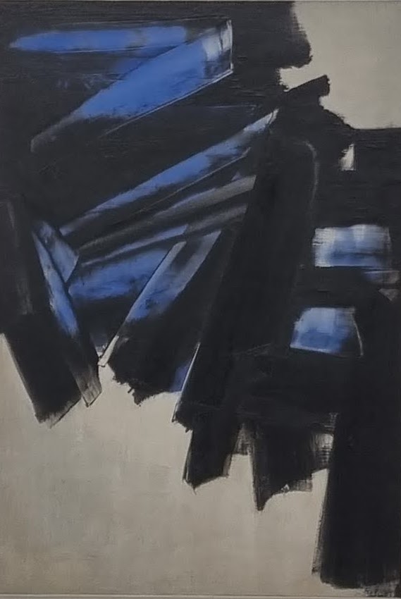J’avoue que cette fois, je m’ennuie tranquillement devant les Outrenoirs de Soulages, quitte à me laisser surprendre de temps en temps par les grands coups de pinceaux bleus traversant le noir de toiles plus anciennes :