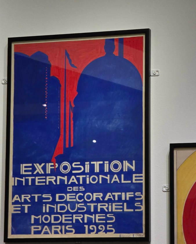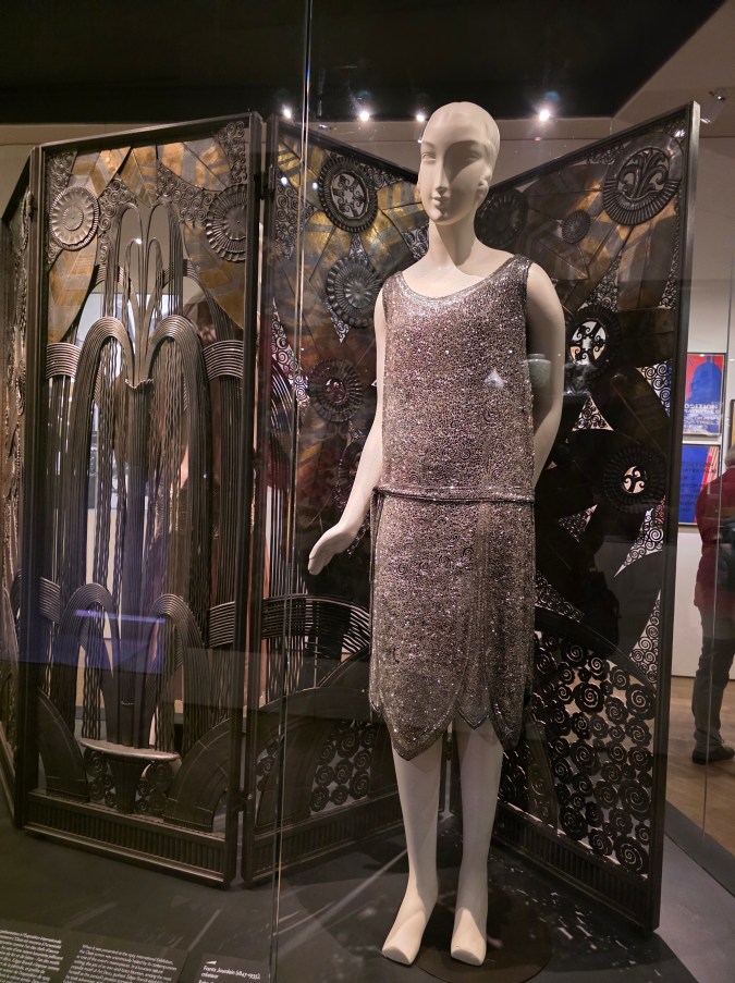 L’exposition 100 ans d’Art Déco commence par le souvenir de la grande exposition de 1925 qui a duré 6 mois, a rassemblé 20 000 créateurs venus de 21 pays et attiré des millions de visiteurs. L’exposition parisienne a eu un retentissement mondial. Il est vrai qu’elle concernait toutes les formes, architecture, mobilier, mode et textile, arts graphiques, publicité et graphisme, bijoux, papiers peints, vaisselle et vases, et donnait aux visiteurs l’impression d’entrer dans une ère moderne.. Pourtant, le nom même d’Art déco ne s’employait pas. Il s’imposera seulement en 1966, bien après que ce courant ait cédé à son tour la place à l’Art Moderne.