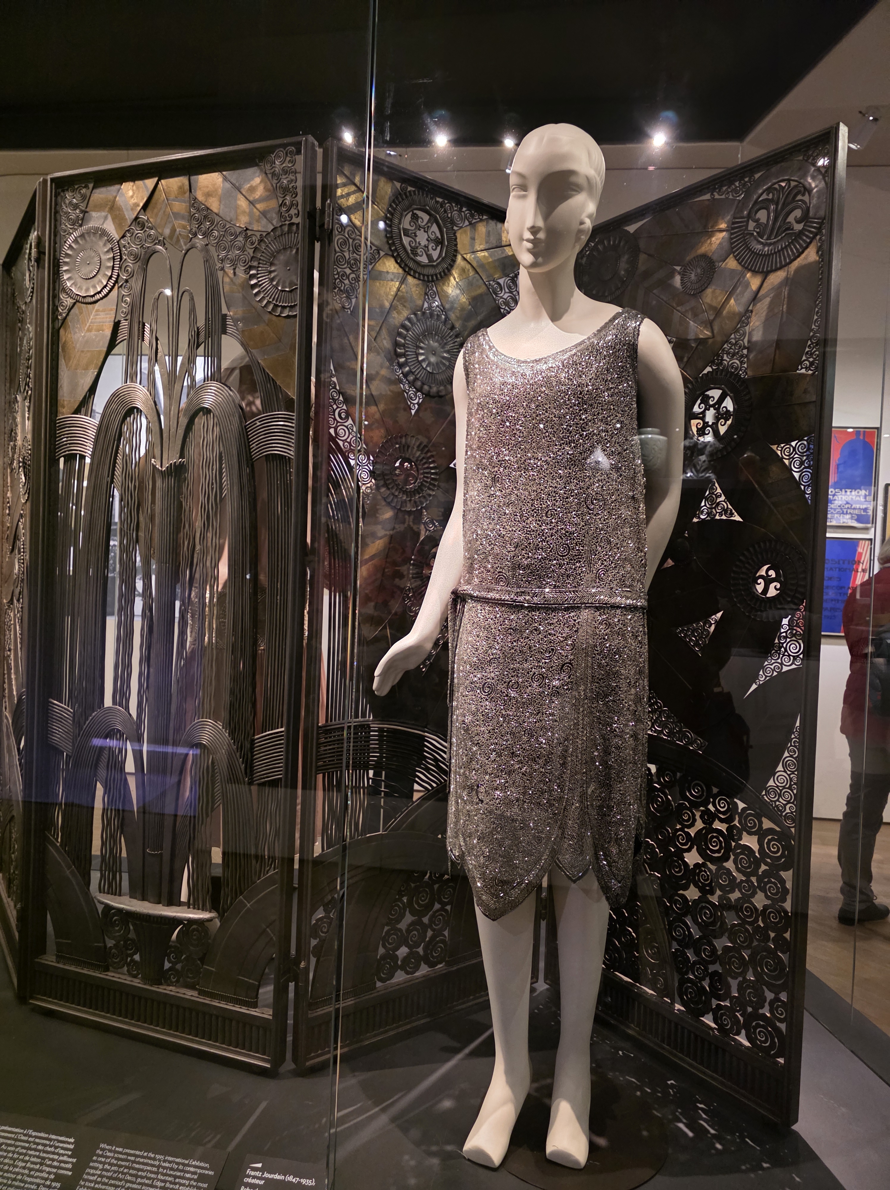De même, le chic de la robe de Frantz Jourdain tient à l’éclat des perles de verre. Elles illuminent l’élégante qui la porte, la transforment en objet scintillant.