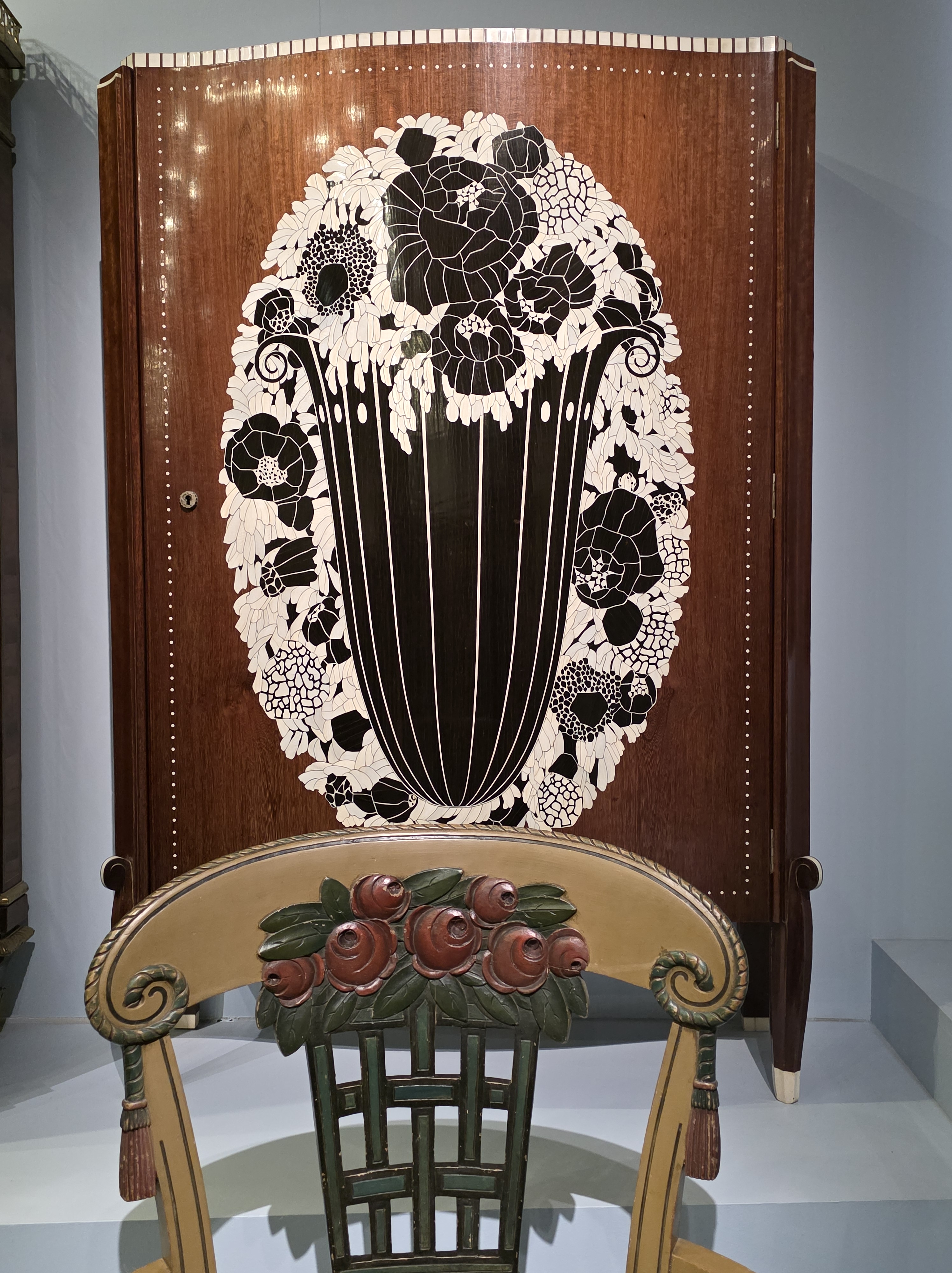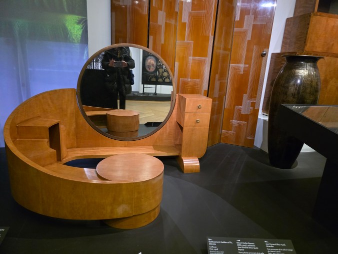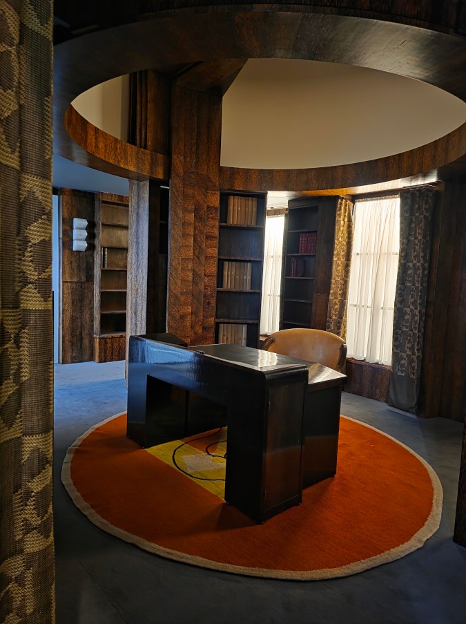 Pour moi, qui ai longtemps confondu Art Nouveau et Art déco, la visite est l’occasion d’une mise au point : l’Art Nouveau est tout en courbes ; l‘Art déco privilégie la géométrie, les formes angulaires, les meubles massifs, les couleurs pures…