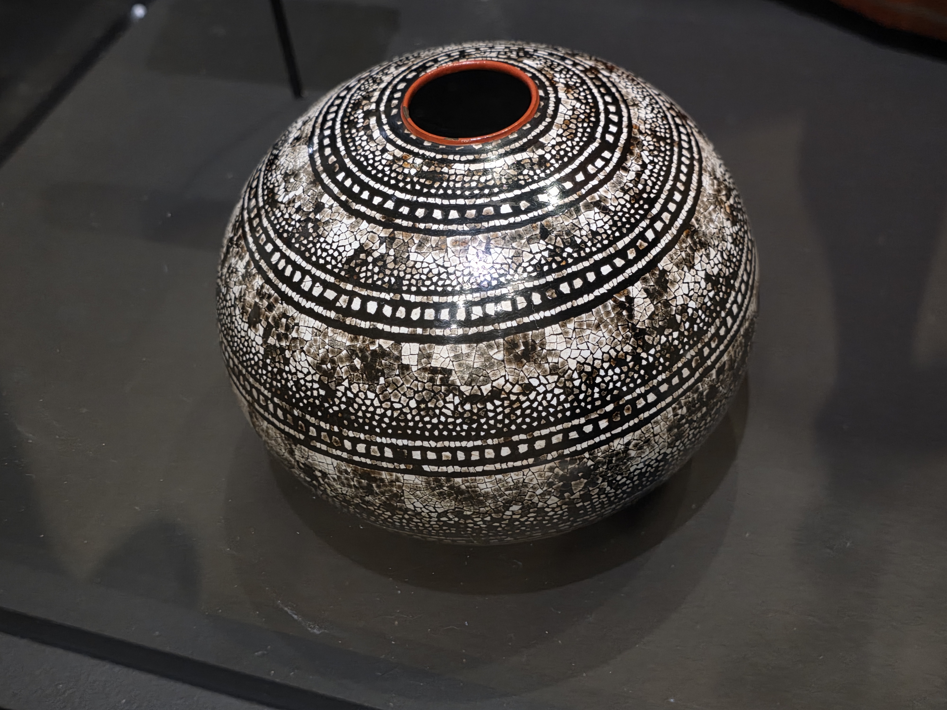 Je comprends le prix atteint par ces créations, même lorsque les matériaux sont modestes : le vase de Dunand, qui avait appris la technique de la laque au Vietnam, est orné de débris de coquilles d’œufs — puisque l’ivoire, trop vivant, jaunit — Mais les éclats de coquilles doivent être incrustés un à un. Tout cela exige un temps, une précision presque déraisonnable.