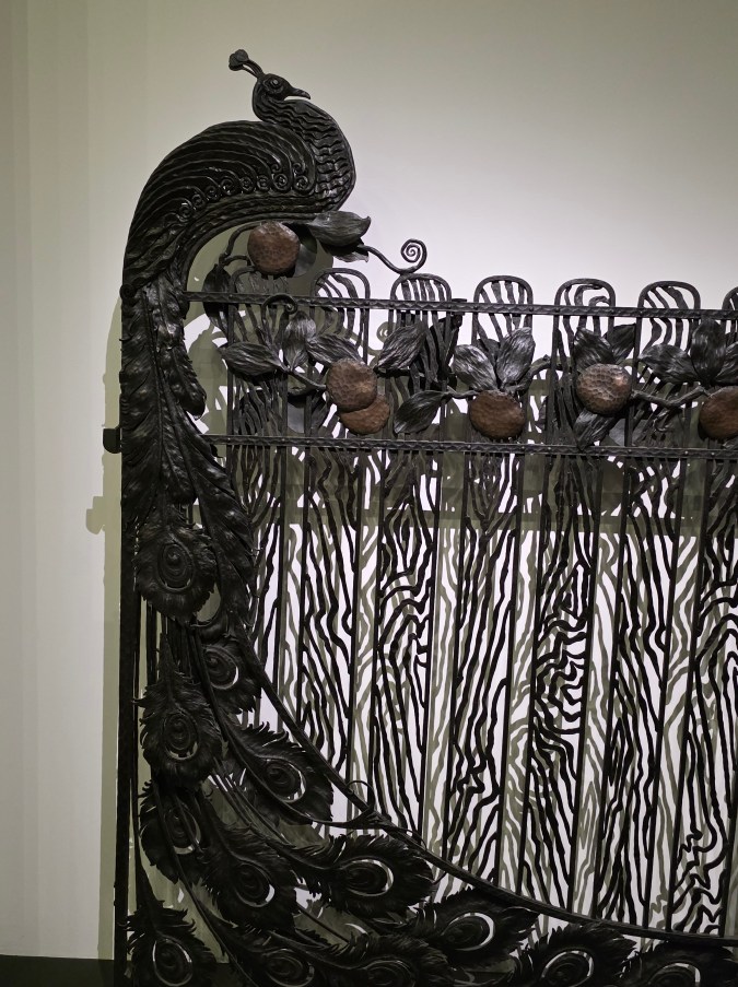 Et les silhouettes de paons à longue traîne que l’on retrouve dans la belle grille dessinée par Jean Pérot et ouvragée par Léon Conchon viennent d’un monde ancien, mais elles sont comme épurées.