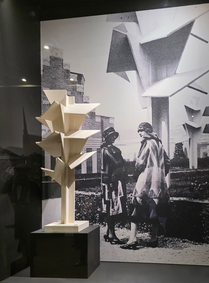 Sonia Delaunay, plutôt présente comme styliste que comme peintre, et Robert Mallet‑Stevens qui a dessiné l’arbre-en-béton réalisé par Jean et Joël Martel, font le lien avec le cubisme.