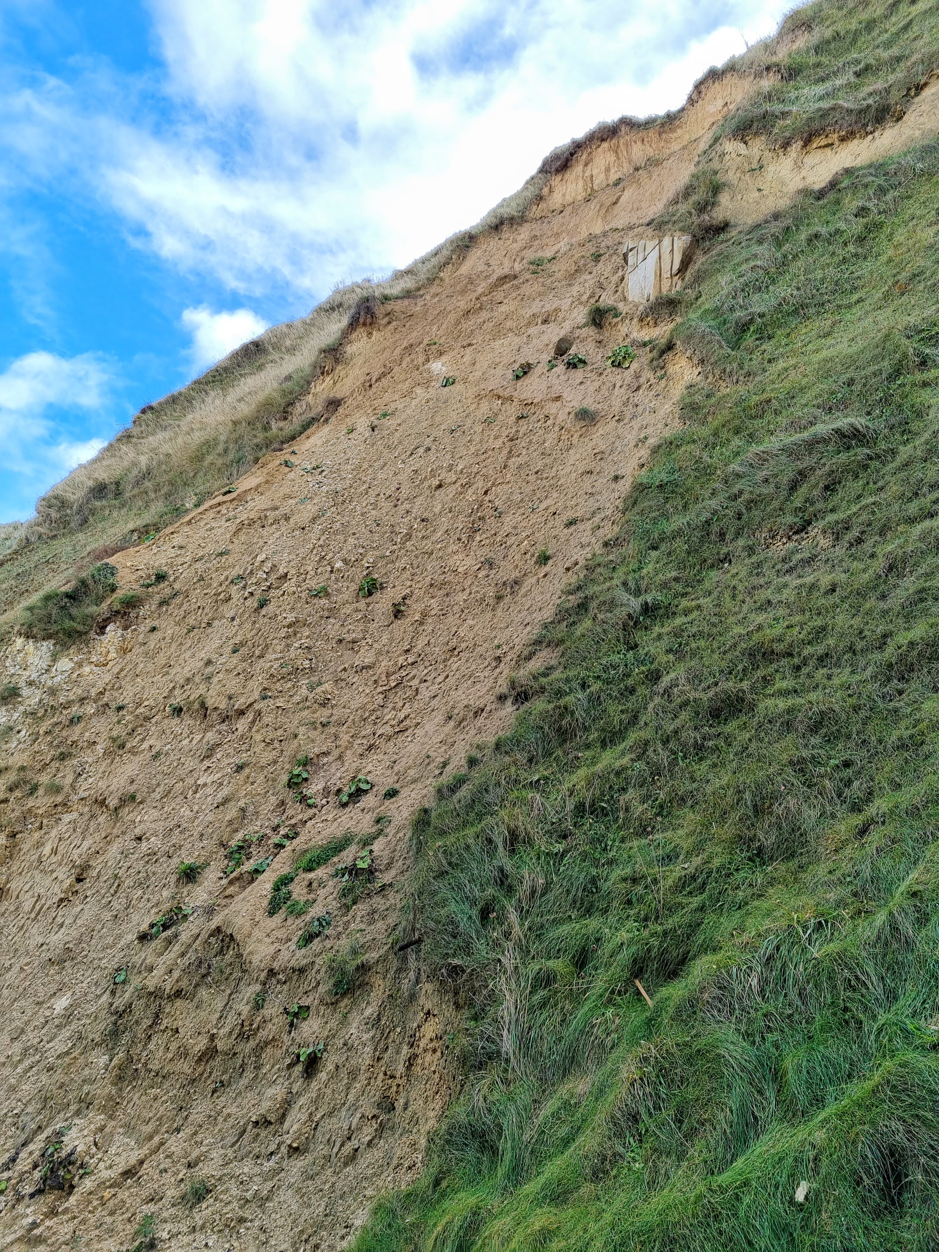 Un peu plus loin, au niveau du phare d’Ailly, la descente est plus commode, même si la roche est tendre et si la terre peut s’effondrer lors d’une prochaine tempête.