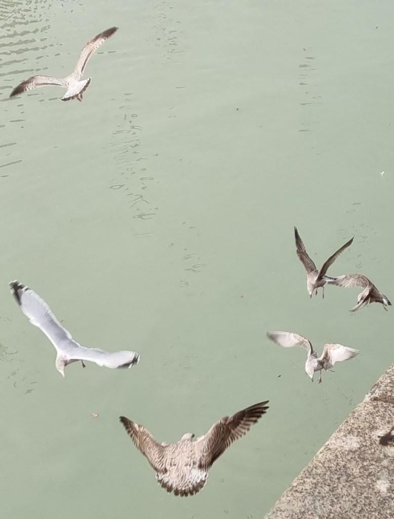 A chaque vague, l’eau recouvre la plage jusqu’au milieu avant de repartir en petits filets ruisselants, A chaque vague, les creux se remplissent et on ne sait trop si la marée est montante ou descendante. On s’inquiète un peu de ne pouvoir regagner à temps la valleuse, jusqu’à ce qu’un, moins sot, ait l’idée de regarder l’heure de la marée sur son téléphone.
