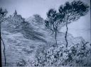 Bien sûr que c’était très beau ces dorures, ces lustres à pendeloques, ces meubles d’ébénistes parisiens, ces pendules, ces décors fastueux ou gracieux, mais je pensais à l’église de Carbini sertie dans un grand cercle de montagnes, à la simplicité de son plan réduit à l’essentiel, au visage schématique du modillon, au sculpteur qui n’avait même pas eu besoin de tracer une bouche pour représenter l’humanité éternelle. (https://passagedutemps.wordpress.com/2021/08/28/leglise-romane-de-carbini/)