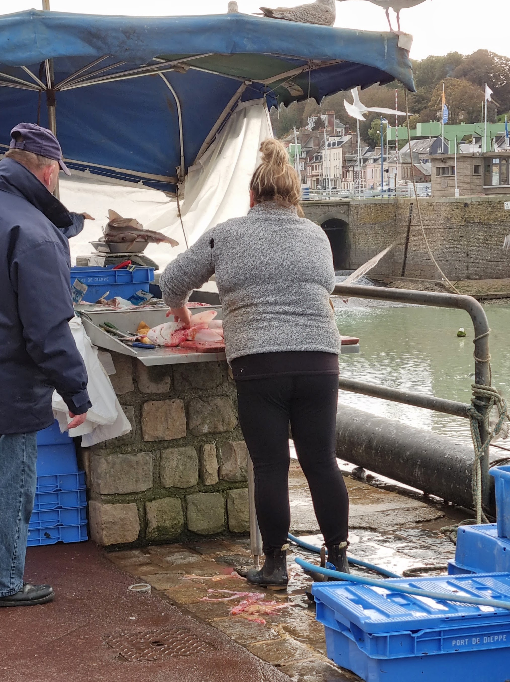 Désormais, le nom d’Ango évoquera aussi l’armateur et encore l’image entraperçue d’un des propriétaires : pendant que nous escaladions les escaliers pour voir nous aussi les bateaux entrer dans le port de Dieppe, il a ouvert brusquement une porte pour rappeler un petit chien jaune. Je me demande ce qui décide un homme normal, propriétaire de petit chien, à s’atteler à la reconstruction d’un château qui menaçait ruine. Toute une vie est passée à ce labeur ! Les subventions obtenues sont largement dépensées pour répondre au cahier des charges des Monuments historiques., mais sans elles, impossible de réparer des toitures. Même pas en rêve !