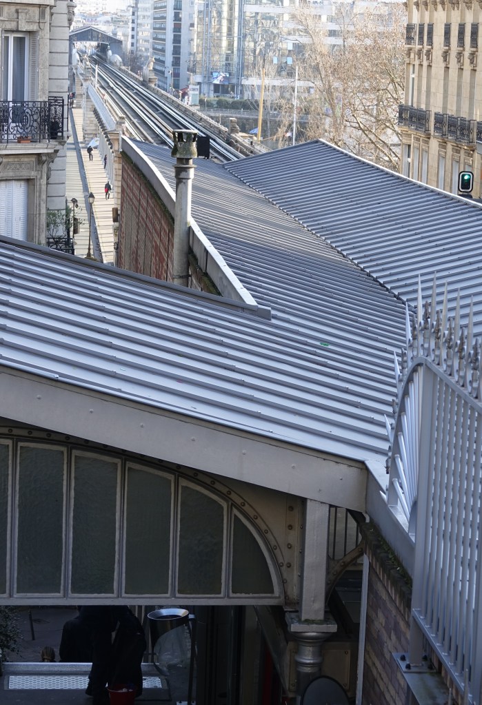 Du sommet de la colline, on domine la station Passy et les rails, qui se perdent au loin de l’autre côté de la Seine.