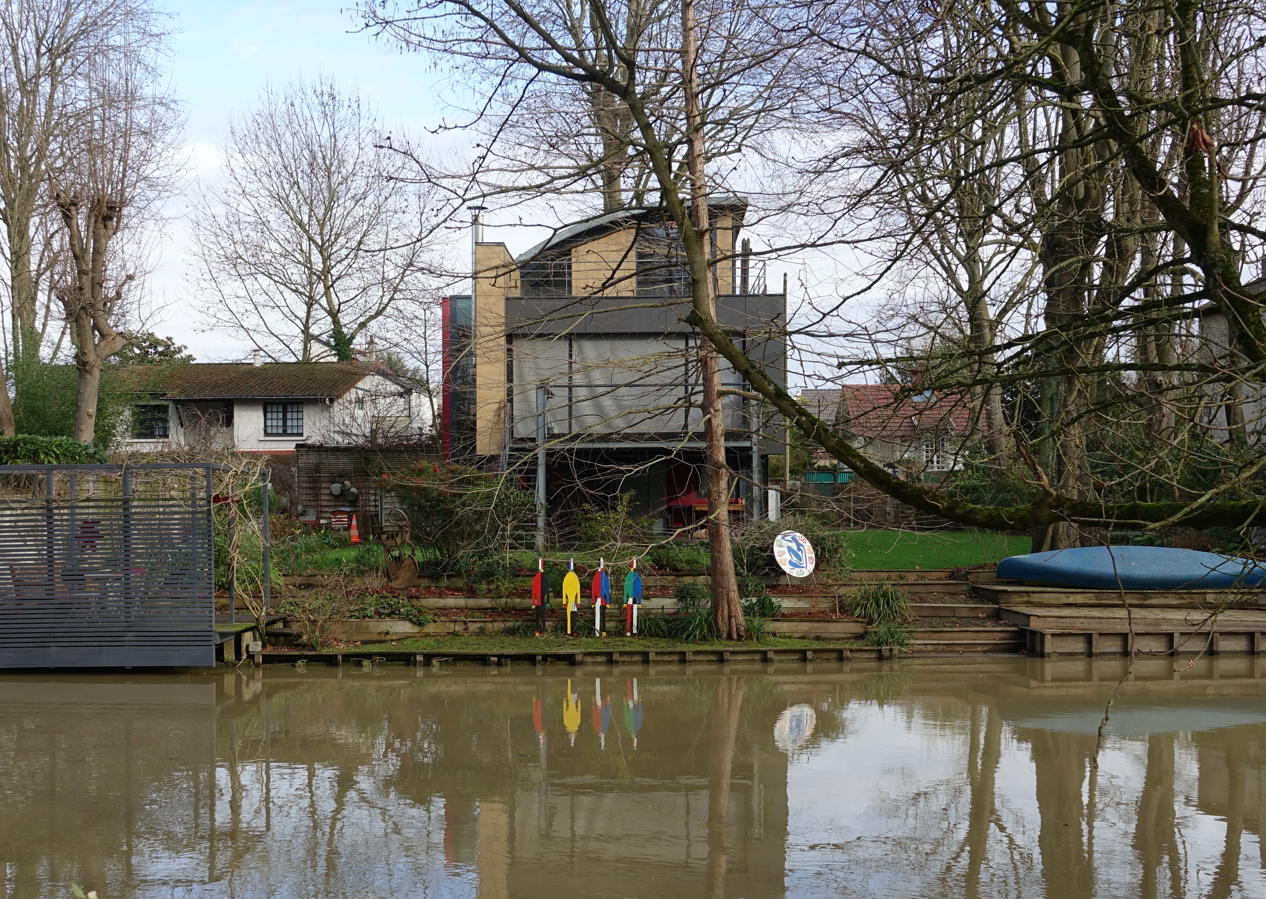 Fragment de passé enchâssé dans la ville avec le silence de janvier, l’eau vert bronze, le canot, les jardinets, la tache verte d’une fausse pelouse.