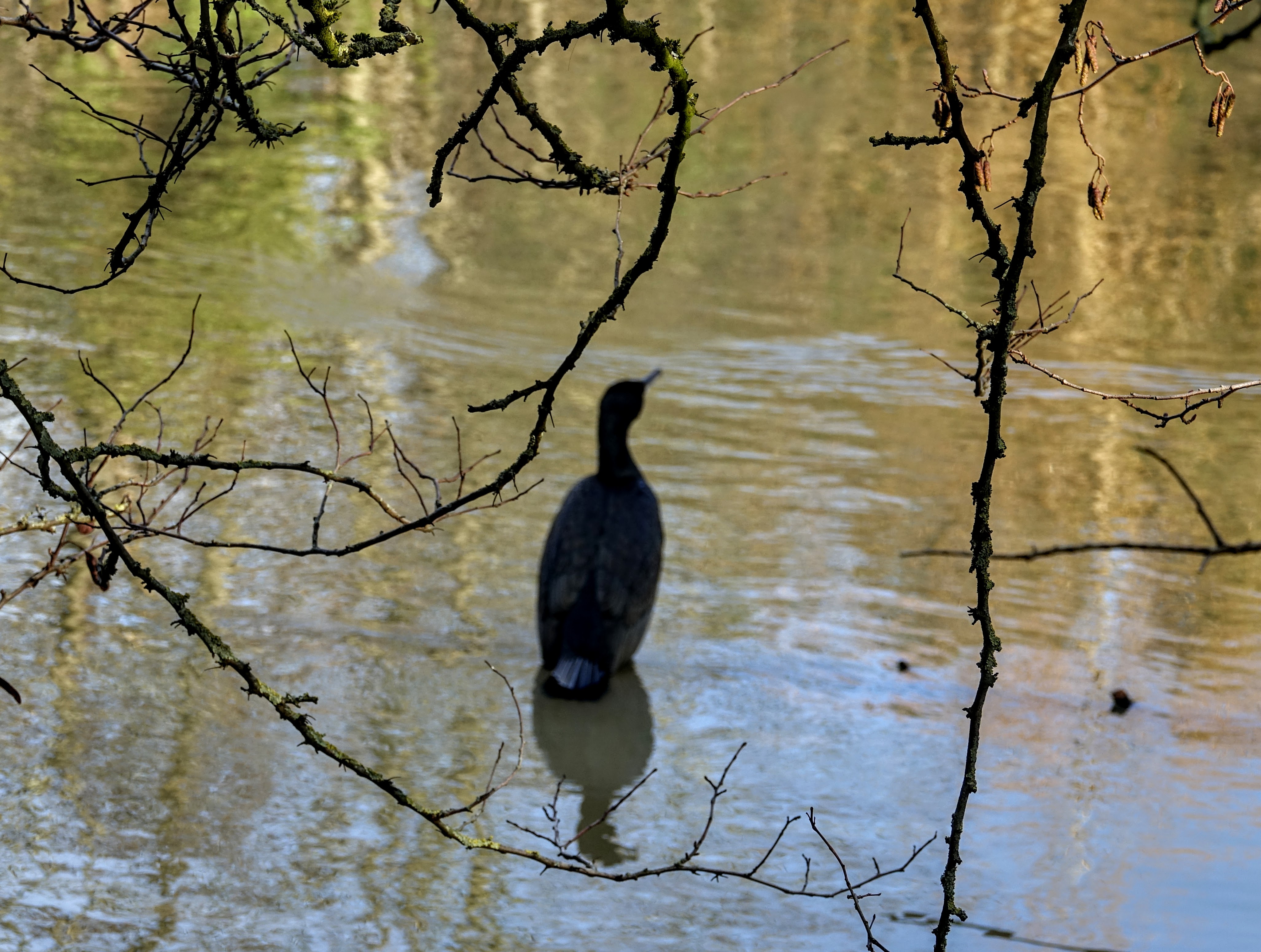 – Alors le cormoran vous fait concurrence ? » (Un cormoran venait de sortir du canal, un poisson dans le bec et de retourner se percher sur les branches hautes d’un arbre. De là, il observait le canal).