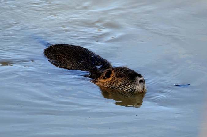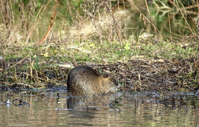 Nous voici sur la passerelle de la Guyère, je crois, à observer les ragondins. Si au lieu de les appeler ragondins, on disait rats de rivière, ils me feraient un peu peur. Ils sont énormes et assez familiers.