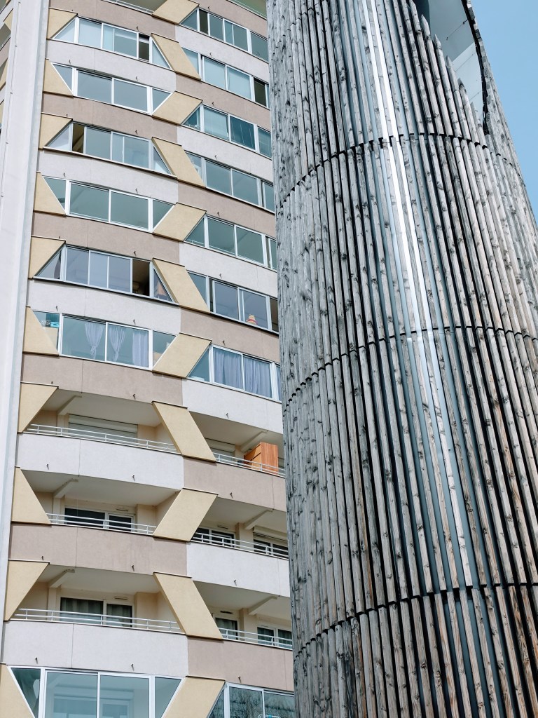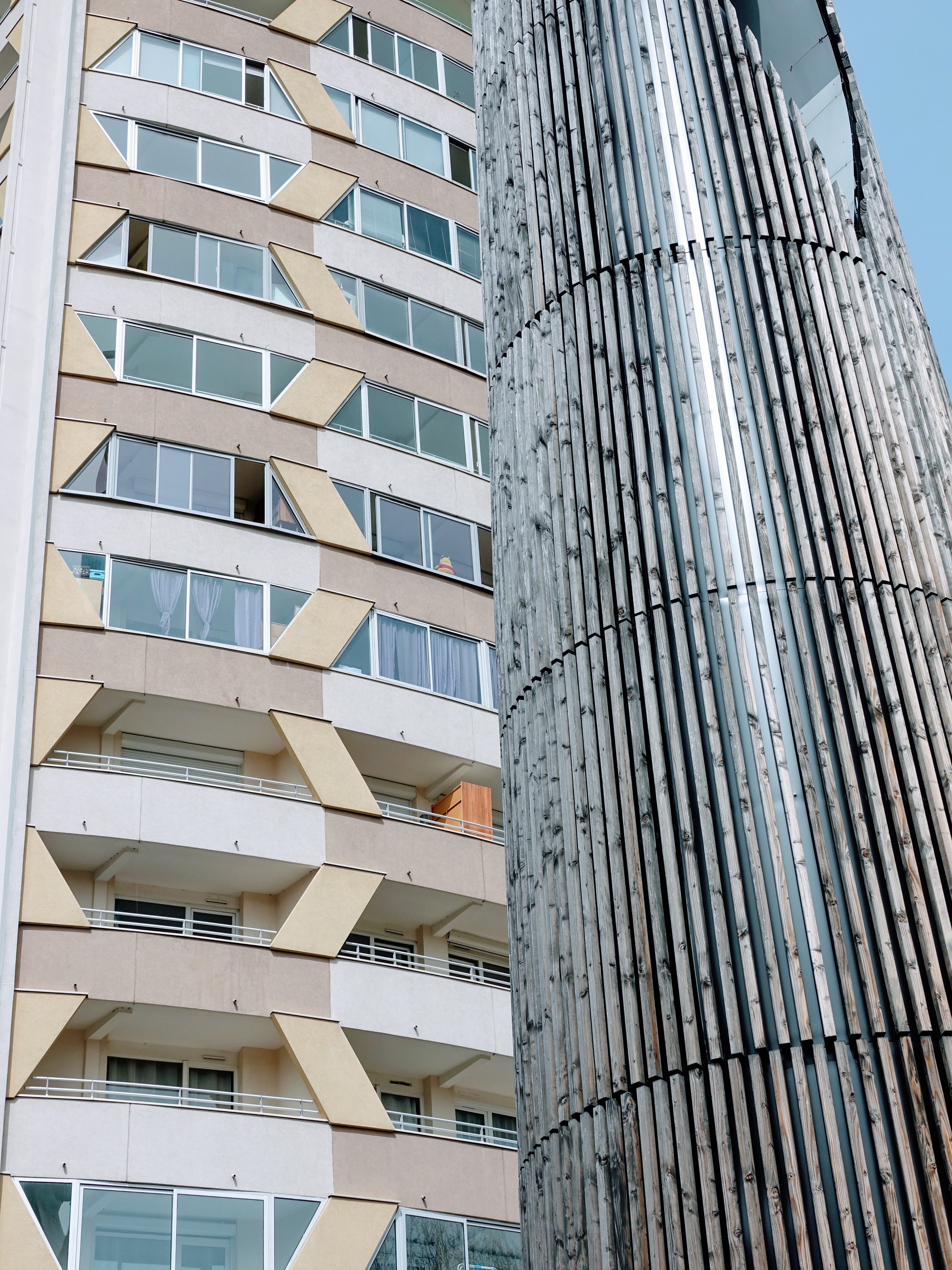 Nous avançons entre les immeubles en direction du tribunal. Les architectes ont assoupli le « brutalisme » puritain des années d’après-guerre en rendant aux habitants couleur et formes décoratives.