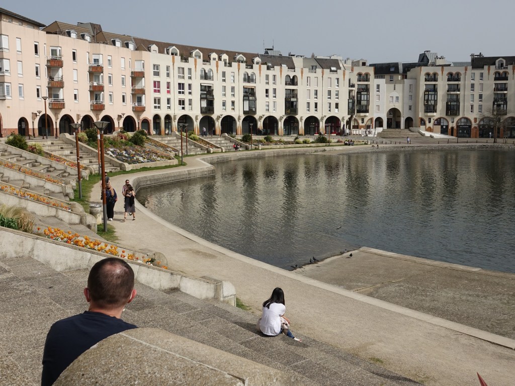 Le promenade s’achève. A défaut d’une terrasse de café, on boit une bouteille sur la placette. Merci Myriam. Malgré le Covid, qui voit s’annuler voyages, activités communes et fêtes, nous avons tout de même de la chance… Il nous reste les lieux qu’on ne se lasse pas de parcourir, qu’on apprend tous les jours à mieux connaître ; il nous reste les blogs qui ont permis de se rencontrer, pas seulement par écrans interposés, mais le temps d’une après-midi partagée… Et pour moi, la découverte du Nouveau Créteil qui semble réaliser l’utopie de la ville à la campagne, ou la dystopie de la campagne en ville, si on refuse le mélange des tours et des lacs urbains !