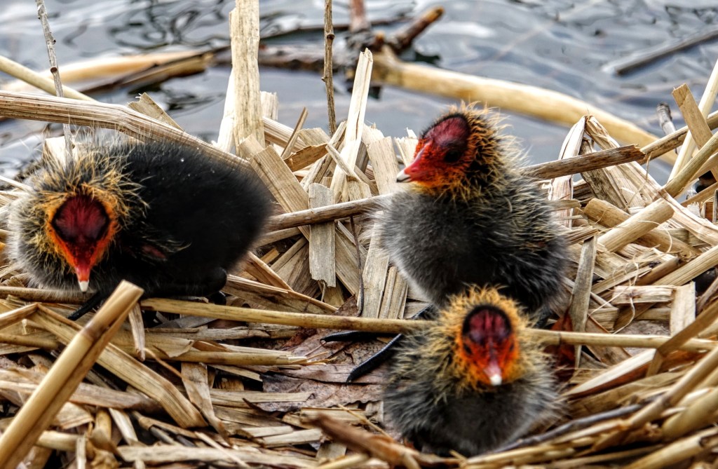 Pourtant, malgré le retour de l’hiver, les naissances se sont accélérées et en longeant la rive, on ne compte plus les nids occupés. Ces oisillons hirsutes sont-ils des foulques ?