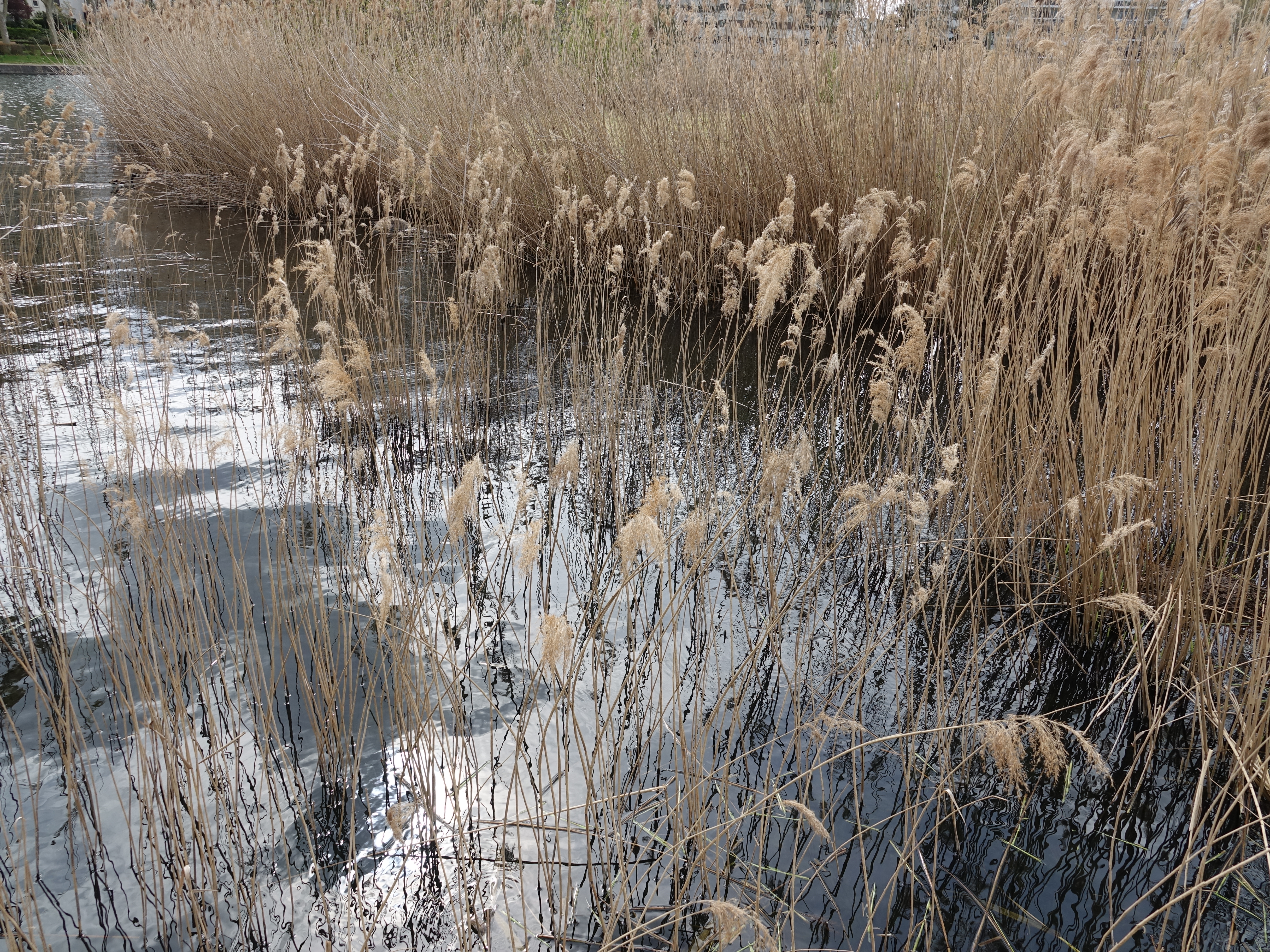 Les roseaux bougent au vent, à deux pas des immeubles.