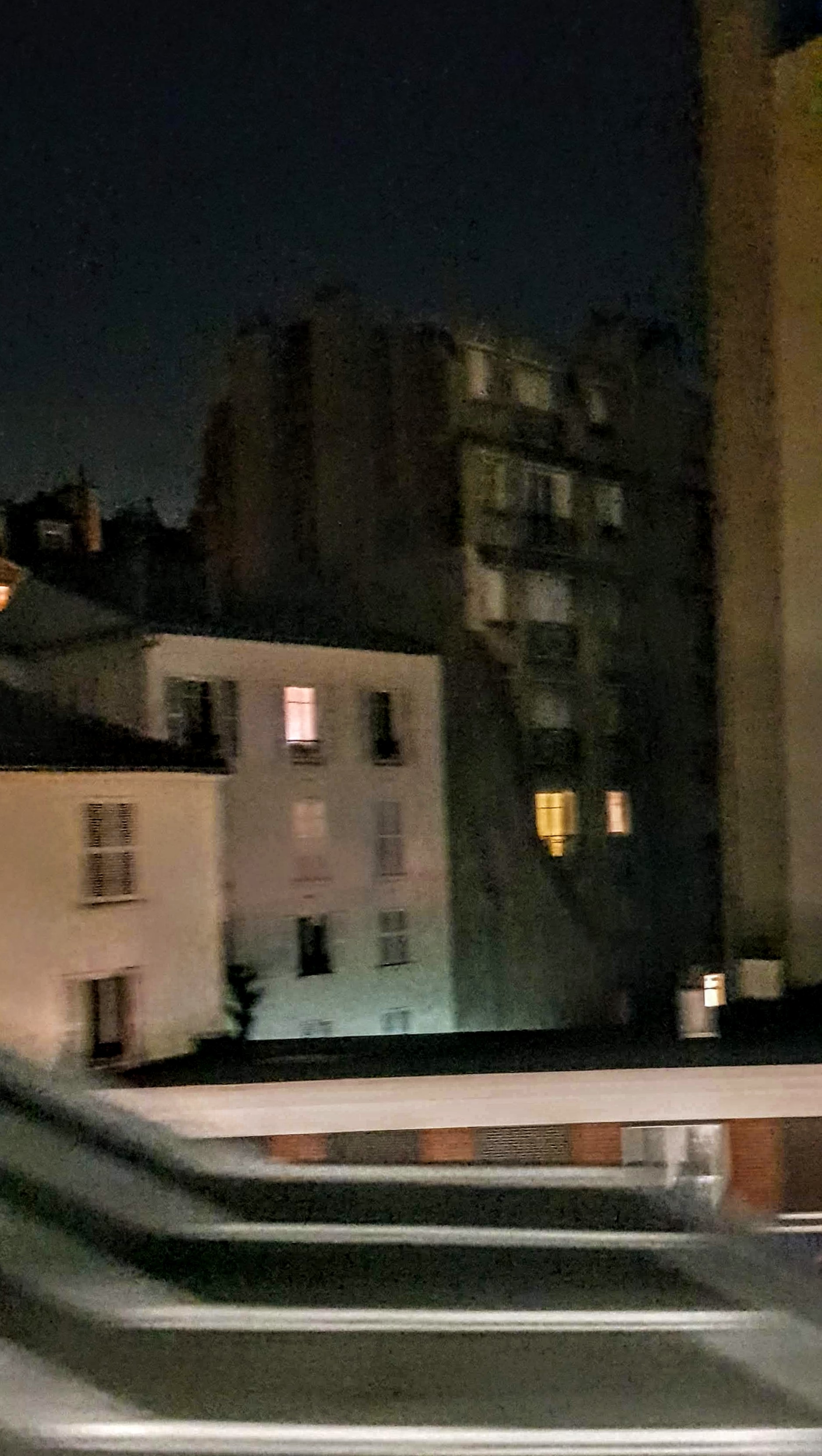 Le métro poursuit sa chevauchée sur le viaduc, le temps de plonger le regard dans des salons illuminés, des chambres à coucher aux éclairages tendres, sur des rues vides… et le métro brinquebalant nous emporte à la station suivante.