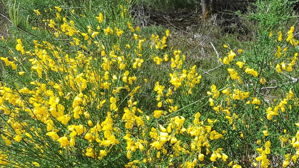 Un buisson de genêts au tournant, papillons de lumière éclairant le chemin, insouciants de répandre tant de parfum et de beauté au milieu de la masse plus terne des buissons.