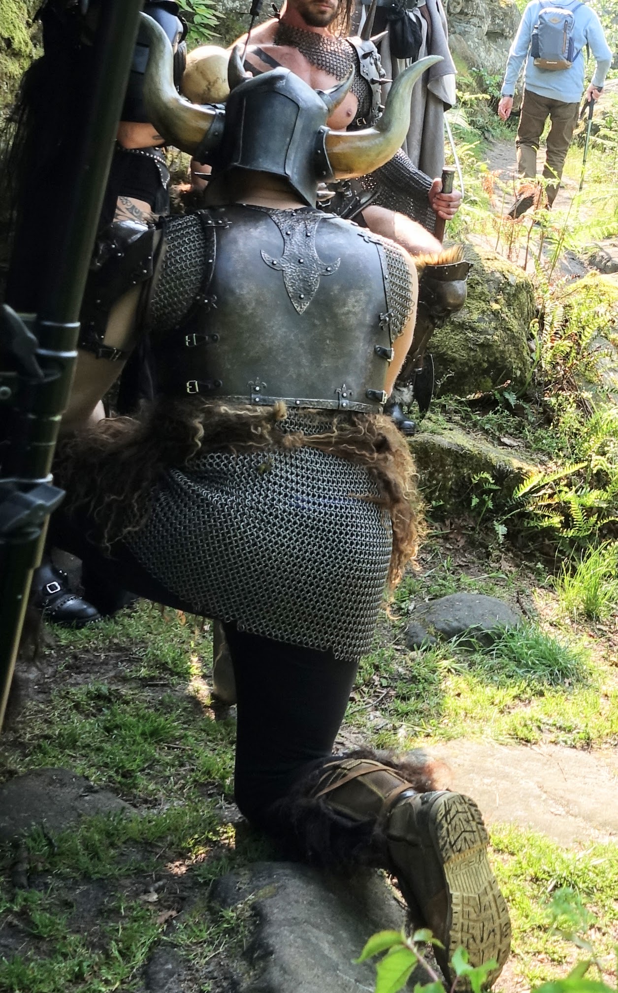 Sous un abri des jeunes gens tournaient un film médiéval avec une princesse à longue chevelure et un guerrier à cotte de mailles, casque décoré de cornes de bovidé et… chaussures de marche à semelle de caoutchouc