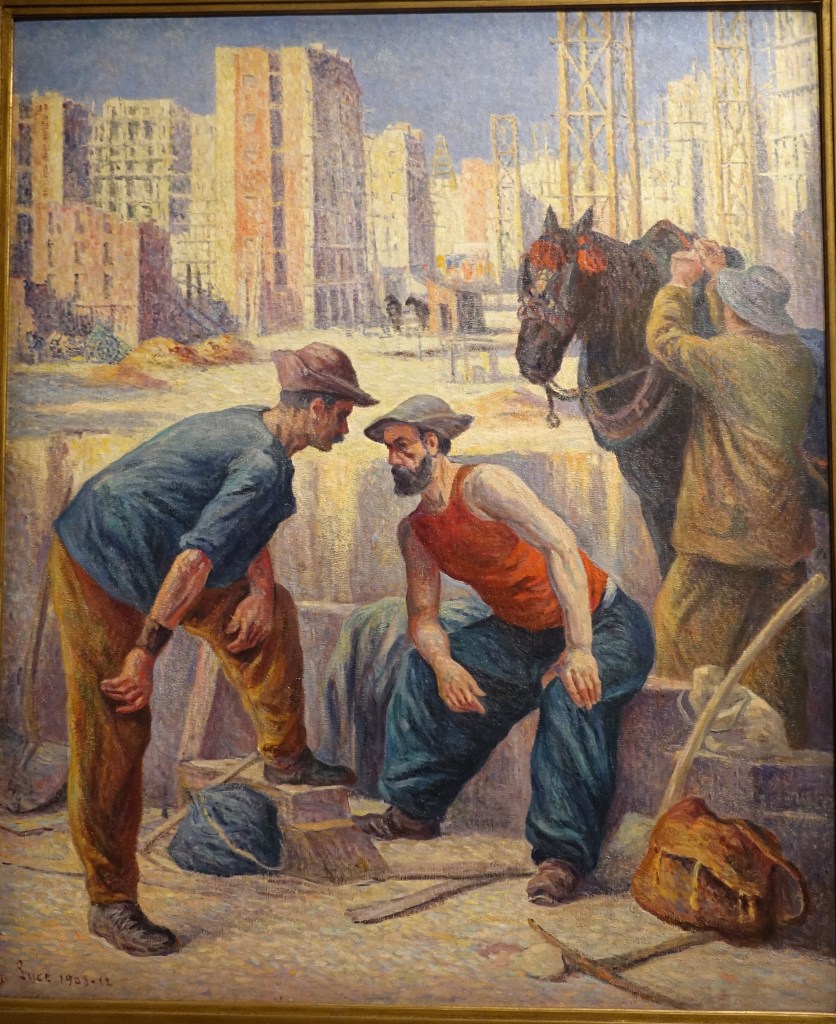 On marque un arrêt pour Maximilien Luce que je connais si mal, qui écrivait dans des revues anarchistes et qui peignait (de façon un peu raide ici) des ouvriers héroïsés, bâtisseurs d’un Paris vertical. Je rêve d’une histoire de l’art qui ferait une place plus importante à ces peintres du travail.