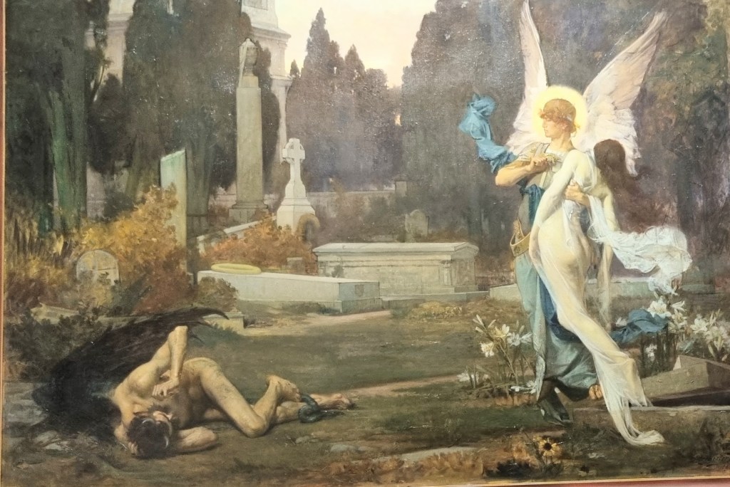 A côté deux musées. Le Musée Saint Loup abrite une collection hétérogène, animaux empaillés, de vestiges archéologiques, de sculptures et de peintures classiques. A moins de foncer vers les œuvres-phares vantées dans les catalogues (L’homme au luth de Rubens, L’Enchanteur et L’Aventurière de Watteau, Esprit de Baculard d’Arnaud de Jean-Baptiste Greuze), le visiteur harassé s’épuise devant les douzaines de portraits de familles bourgeoises qui n’ont guère plus d’intérêt (ou autant) que la collection de photographies d’une vieille tante. Mais nous voici devant un Saint Michel transgenre qui sauve une trépassée des griffes d’un démon rabougri. La toile d Etcheverry raconte la mort avec tous les stéréotypes du temps, le cimetière, les cyprès, les tombeaux, le corps chaste et frigide de la morte. Etonnant !