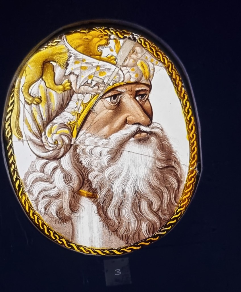 Plusieurs vitrines sont consacrées à l’art profane. Le tableau le plus inattendu est une représentation en pied du maître boucher Jean Legas un peu avant sa mort. Tout paraît loufoque dans ce portrait, la nudité dissimulée dans une toge de héros antique, le petit chien qui sert de compagnie au lieu d’une famille de notable, la barbe de prophète ondulée qui tombe jusqu’aux genoux. La notice dit que Legas était connu dans la région pour cette barbe démesurée. Lors d’un séjour à Troyes en 1586, le Roi Henri III demanda à le rencontrer pour en juger par lui-même et constatant qu’on ne lui avait pas menti, assura à l’artisan son soutien pour que sa descendance assure le fermage des Boucheries de Troyes. Au temps où vivait Legas un roi de passage pouvait vous transformer en notable pourvu que votre barbe ne soit pas postiche.