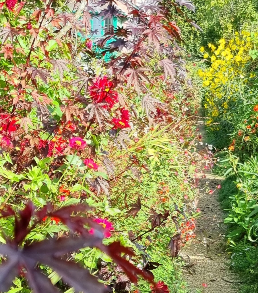 On voyait pourtant qu’il y avait des arbres superbes, dont un cèdre qui dépassait du bosquet à l’arrière du château. Devant l’entrée, le jardin des dahlias, les dernières roses.