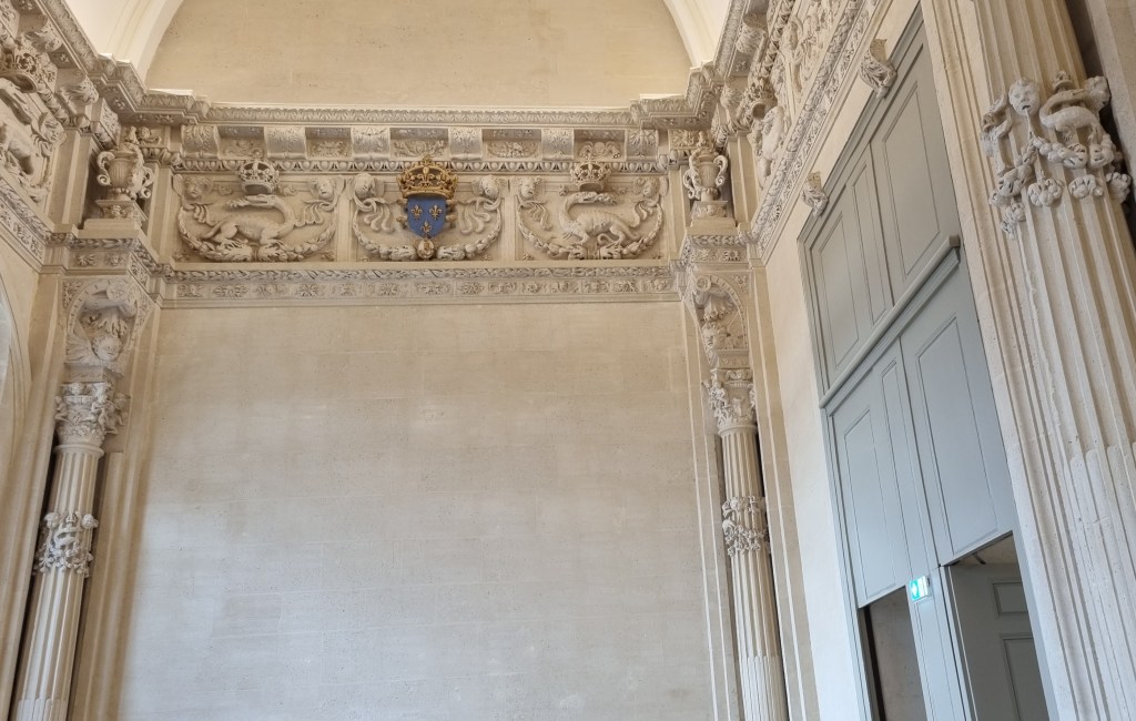 Tout de suite, dans le hall, s’impose le modèle romain avec un buste d’empereur… mais non, c’est un frère de Napoléon à qui le sculpteur a fait une tête de César sans aucun rapport avec les traits du modèle. Des colonnes de faux marbre (en fait des poteaux de bois), des décors de glaives et de couronnes.