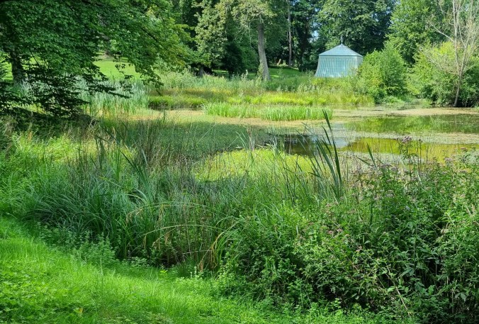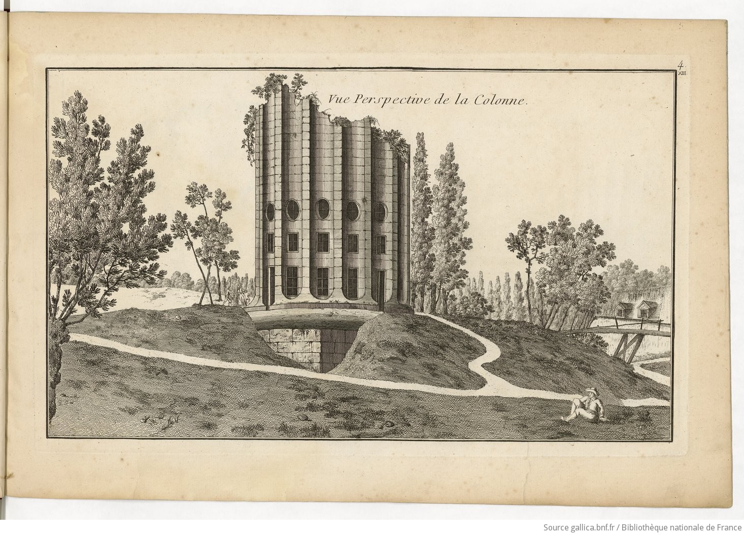 En 1774, la mode était à l’apparente liberté des jardins anglais que l’on pouvait agrémenter, à la mode des jardins chinois, de « fabriques », petits bâtiments pittoresques édifiés au détour des allées. (A Paris , le parc Monceau comporte encore quelques vestiges des fabriques conçues pour le duc de Chartres https://passagedutemps.com/2020/11/25/parc-monceau-que-reste-t-il-de-la-folie-du-duc-de-chartres/)