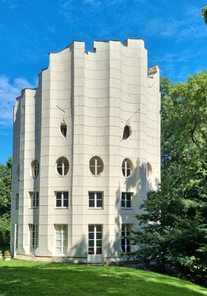 C’est Monville qui avait dessiné dans la muraille ces fausses lézardes, tout à fait fonctionnelles par ailleurs, puisqu’elles éclairaient les pièces de l’étage supérieur.