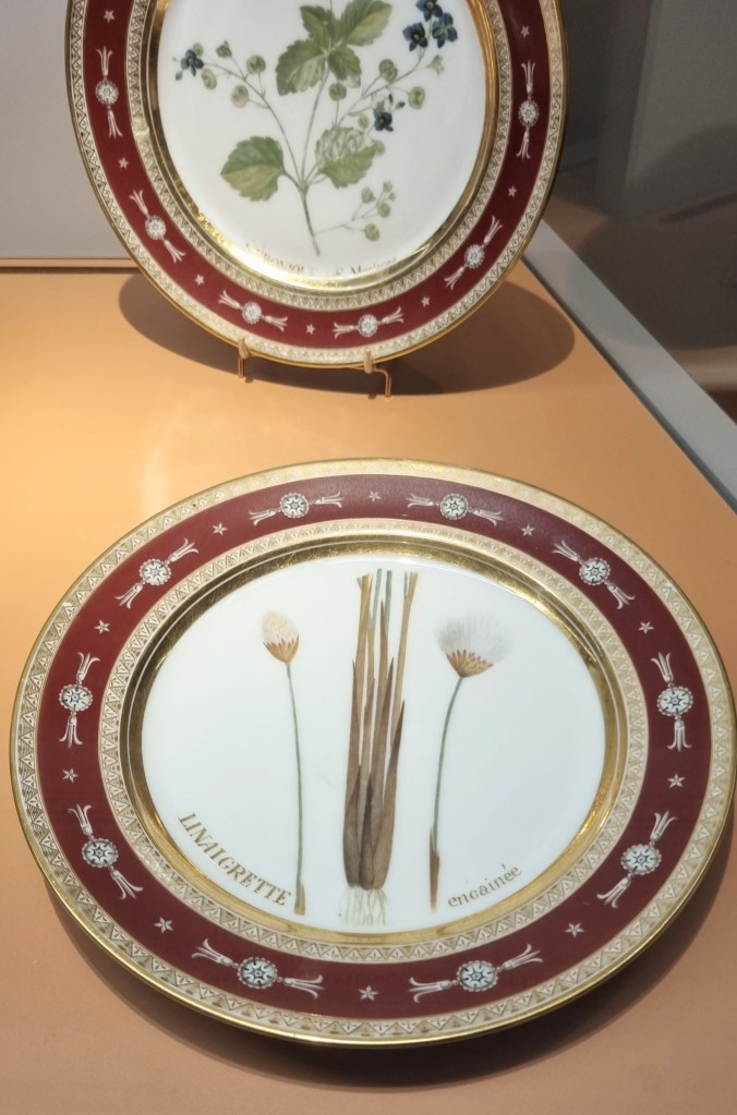 Ce que j’aime le plus, c’est le salon de musique : on y voit la harpe de Joséphine et le piano vertical à incrustations d’Hortense (dont j’apprends qu’elle était musicienne et que ses chansons (150) ont été appréciées). A partir de 1796, les réceptions données par la future impératrice Joséphine sont transformées en véritables concerts. Napoléon Bonaparte s’y montre assidu. Après le sacre, Hortense fera entendre ses compositions dans plusieurs célébrations officielles et certains de ses airs seront utilisés pour accompagner des marches des troupes de la Grande Armée. J’ai lu que ses œuvres les plus connues sont plutôt languissantes et font écho au style troubadour apprécié des hôtes de la Malmaison, comme« Le Beau Dunois », « Quelle est cette femme éplorée » et « La Mélancolie ».