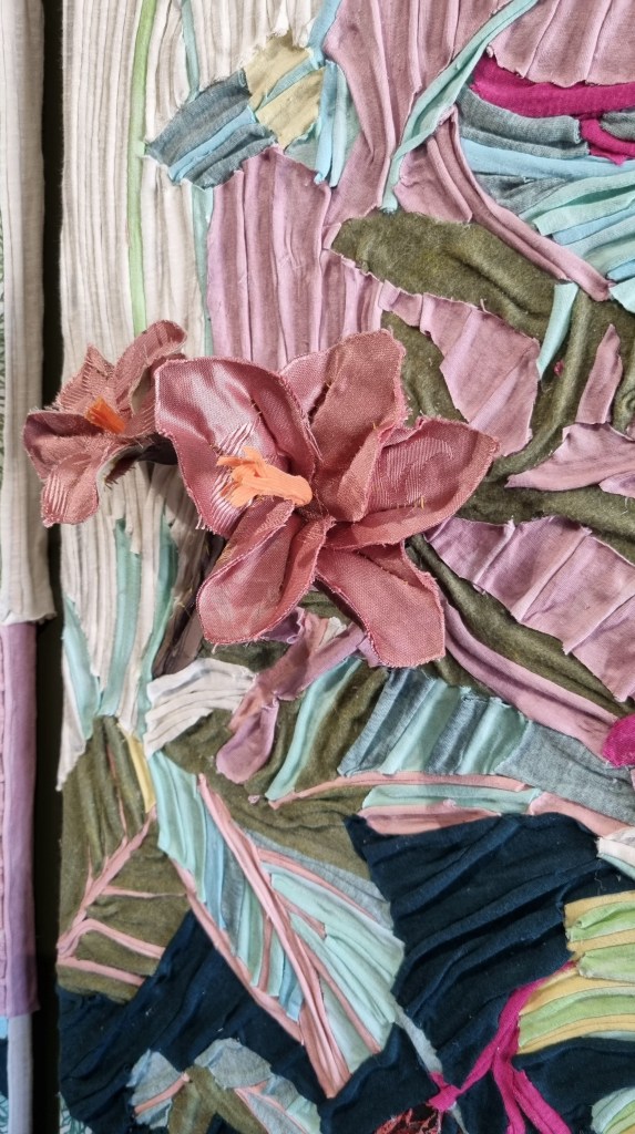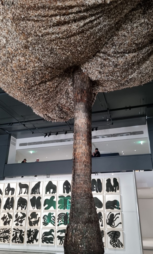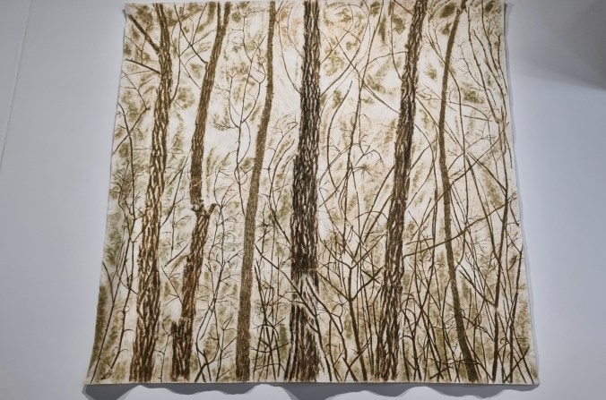 Partout, une célébration de l’arbre : du feuillage en milliers de plumes de Solange Pesoa (Miraceus) qui forme un tissu dense où la frontière entre végétal et animal s’estompe ;
